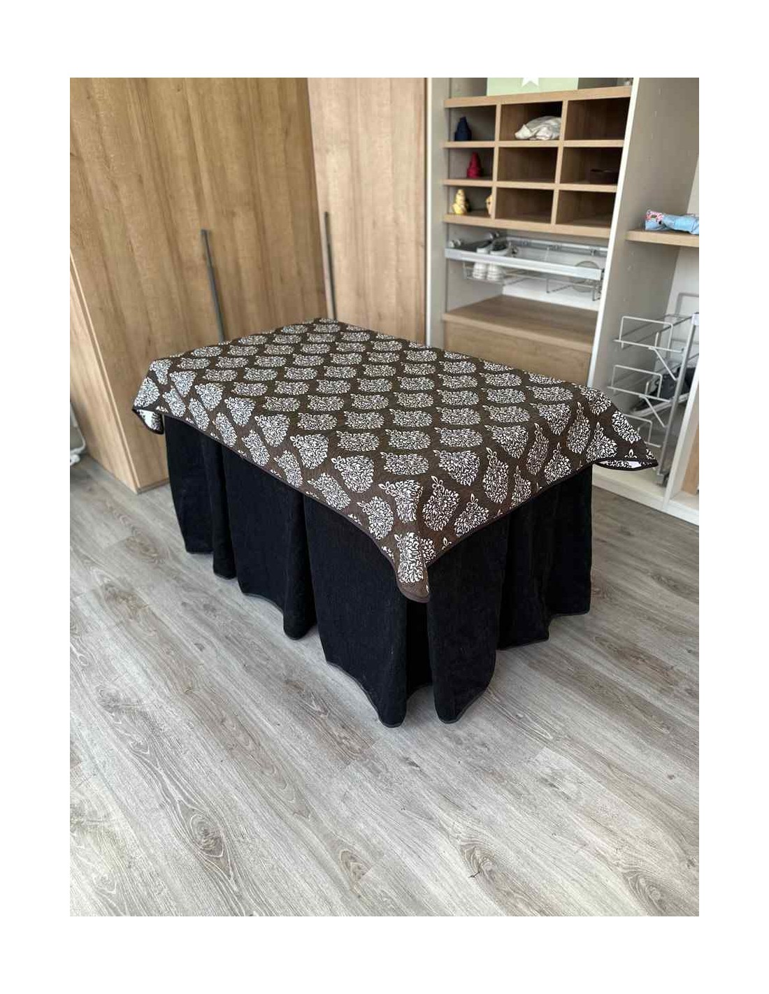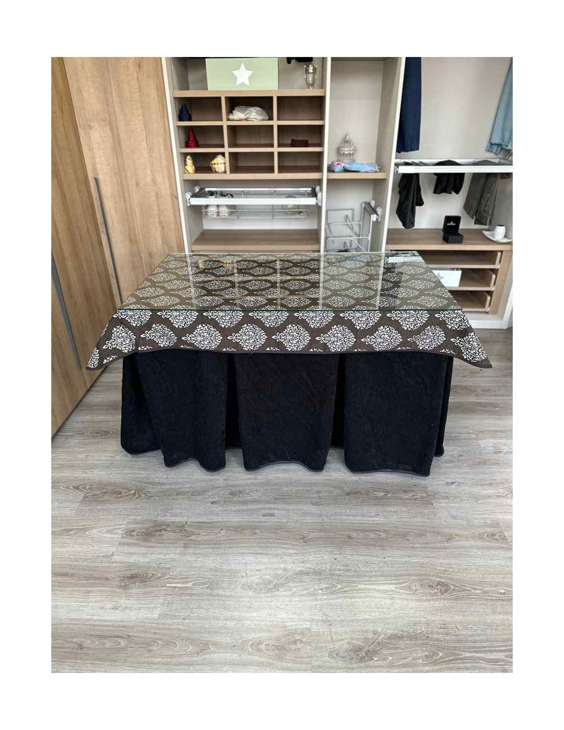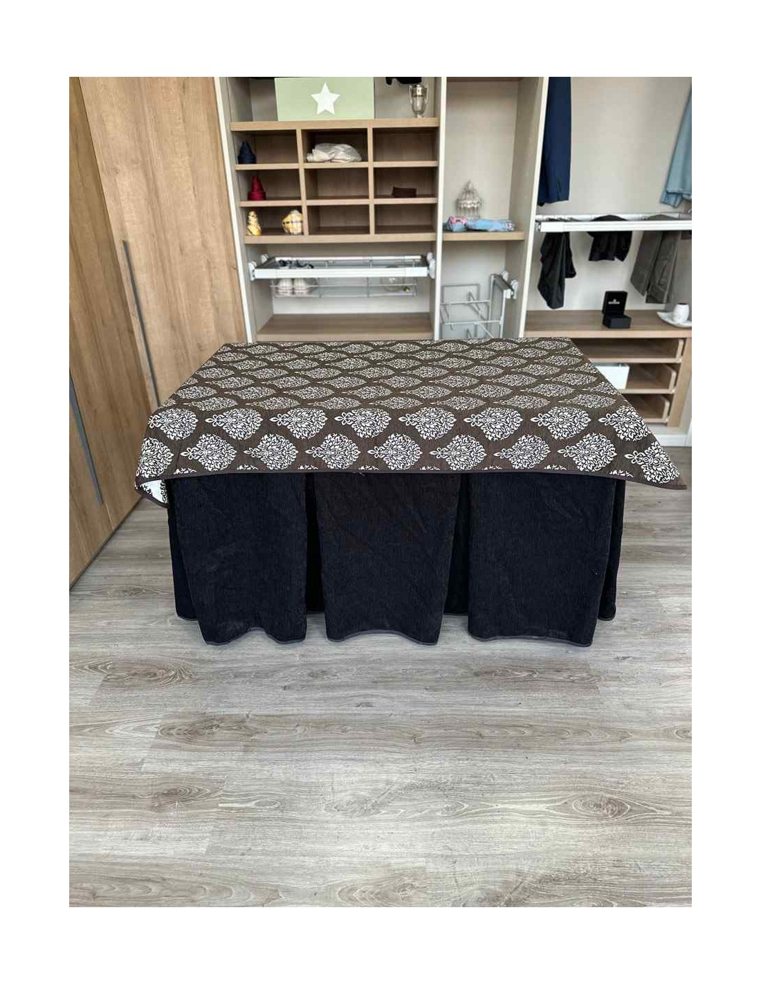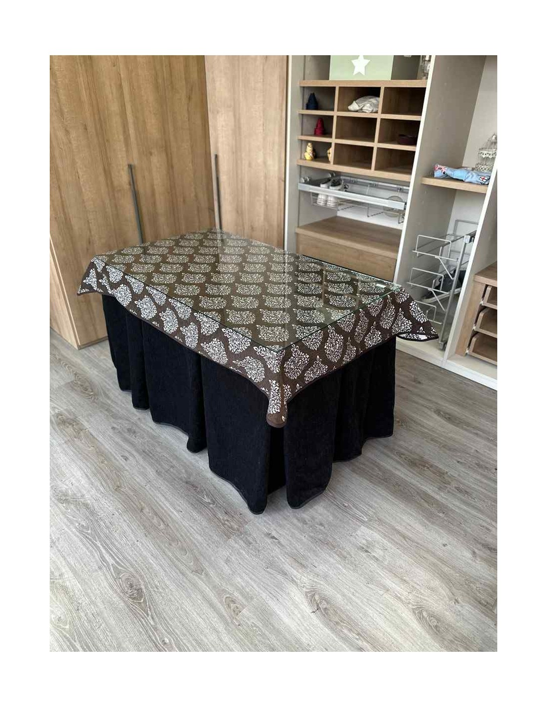 Confeccionada con 10 pliegues para mantener el calor de manera eficiente. Las tablas comunmente llamados pliegues, favorecen la retención de la temperatura impidiendo escapar el calor cuando nos sentamos en la mesa y nos cubrimos con ella. Gracias a nuestro diseño en los fuelles la falda de mesa camilla caerá cubriéndono los laterales e impidiendo que escape el calor.