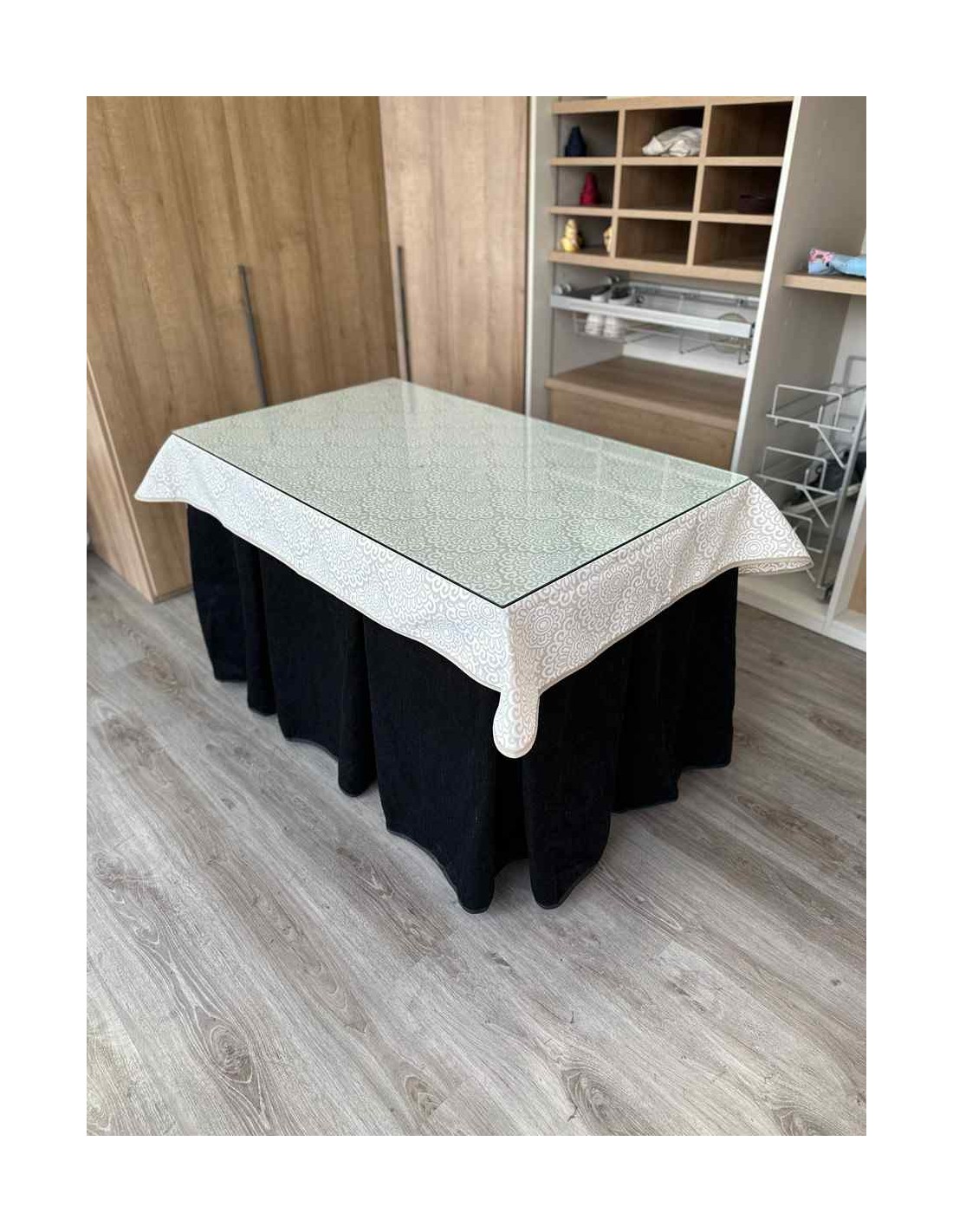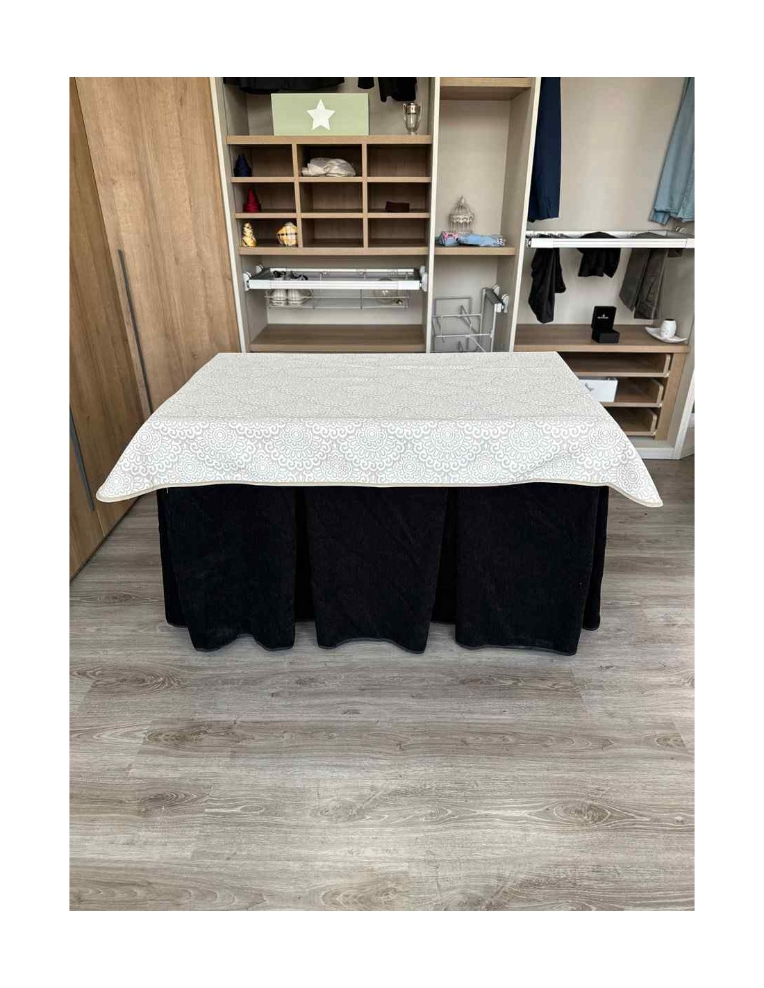 Confeccionada con 10 pliegues para mantener el calor de manera eficiente. Las tablas comunmente llamados pliegues, favorecen la retención de la temperatura impidiendo escapar el calor cuando nos sentamos en la mesa y nos cubrimos con ella. Gracias a nuestro diseño en los fuelles la falda de mesa camilla caerá cubriéndono los laterales e impidiendo que escape el calor.