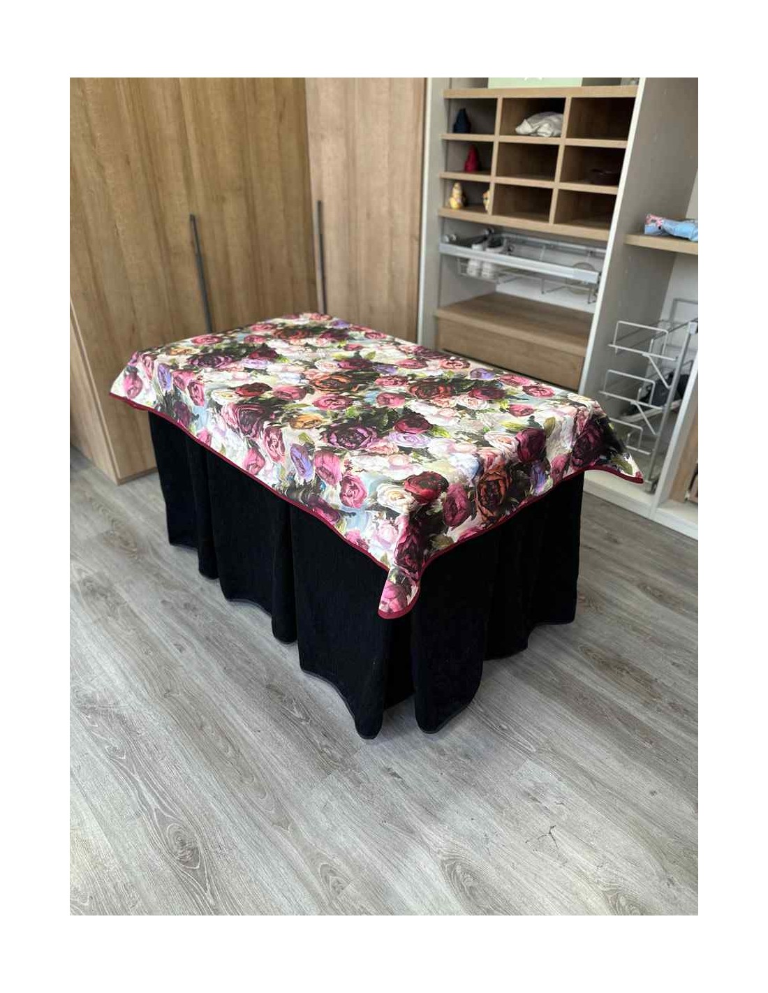 Conjunto Doble Grueso 10 Pliegues Negro con Tapete Flores