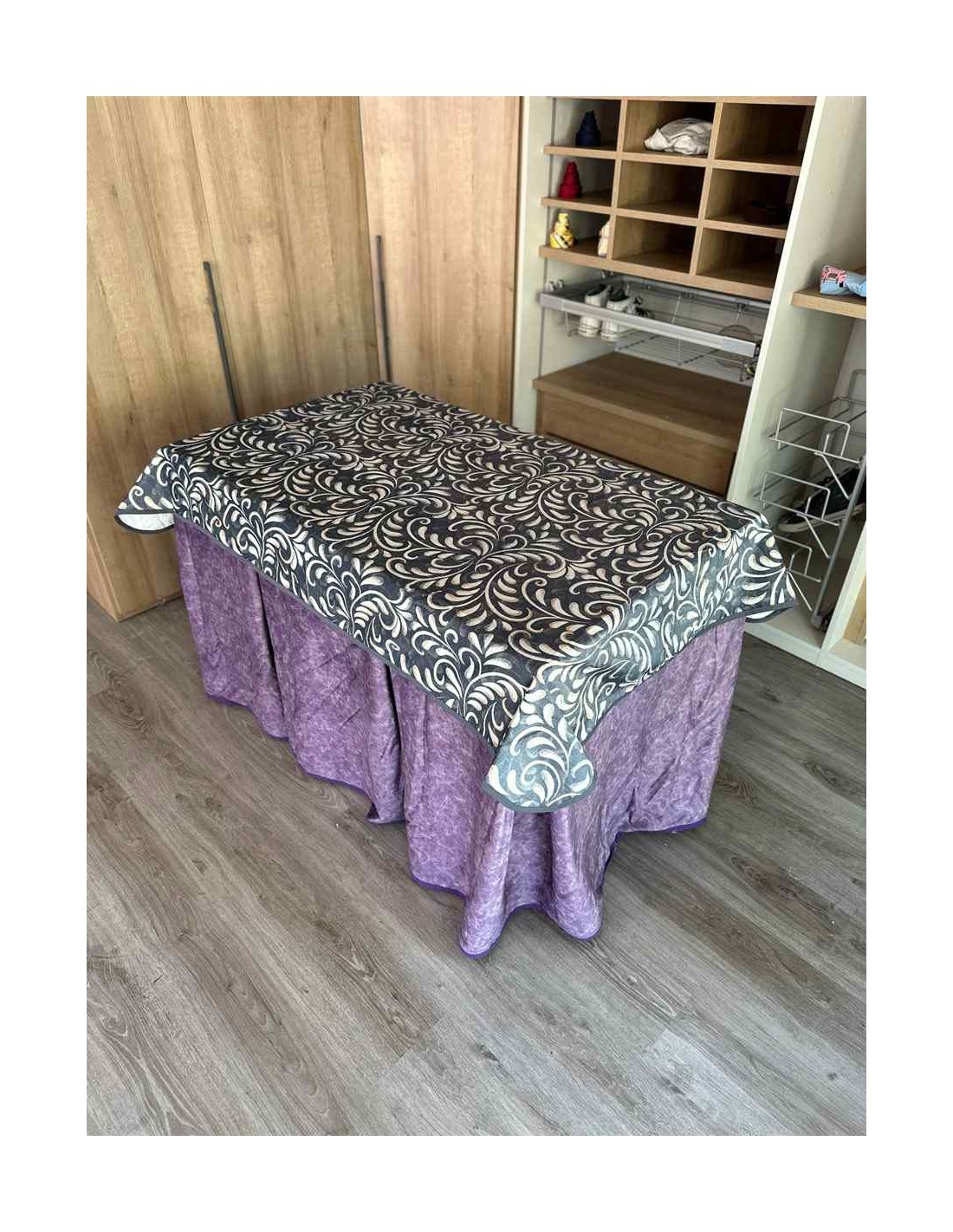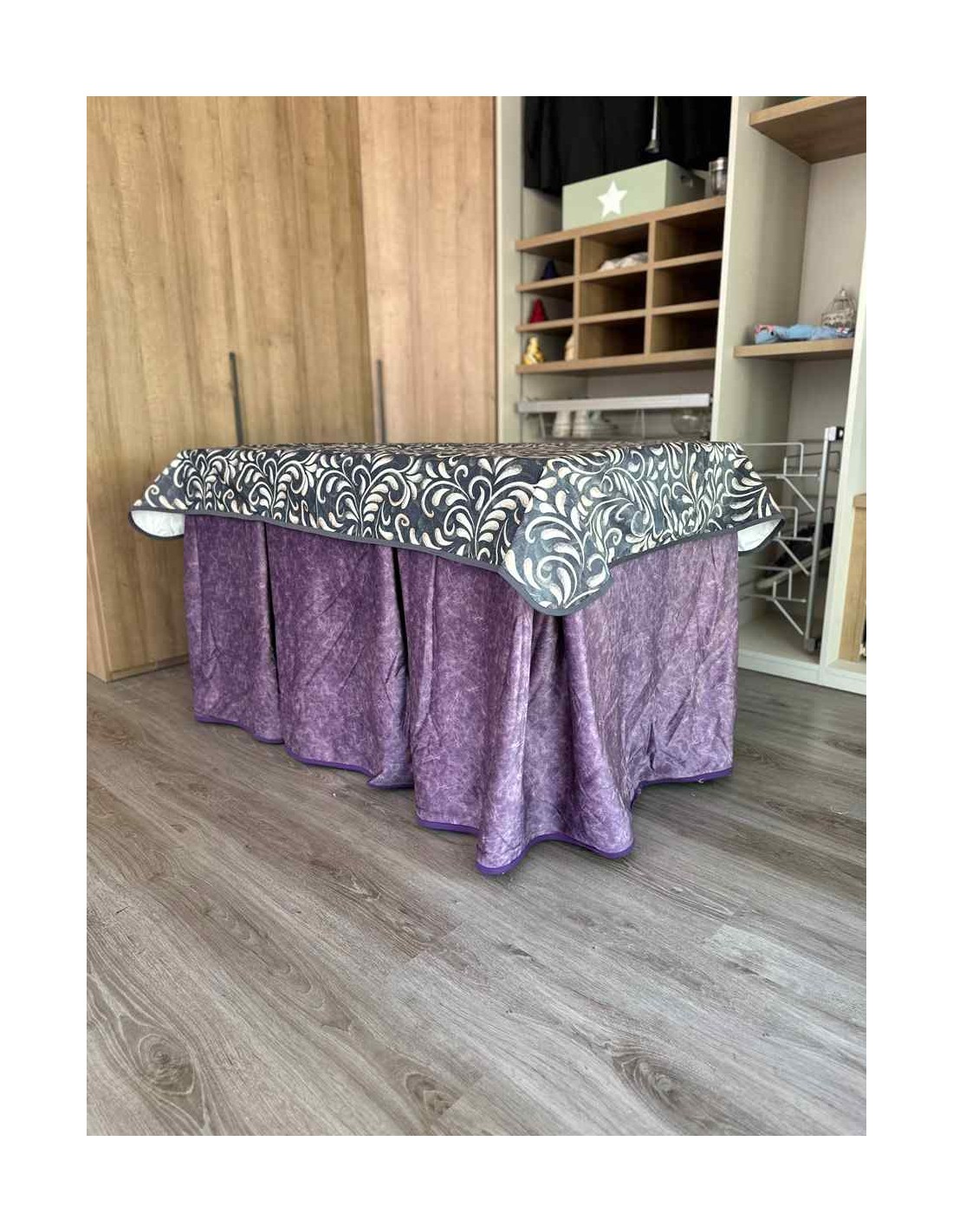 Ropa de mesa camilla morada con forro polar de borrego blanco