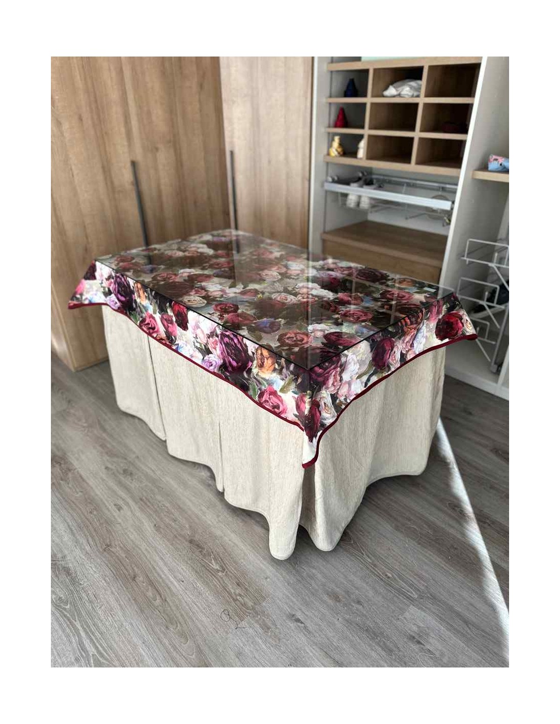 Disfruta la calidez de esta ropa de mesa camilla con tejido chenilla de 8 pliegues con tapete. Tacto suave y agradable, mantiene la temperatura facilitando el ahorro de consumo energético.