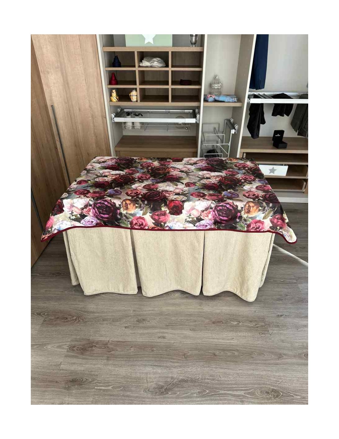 Confeccionada con 8 pliegues para mantener el calor de manera eficiente. Las tablas comunmente llamados pliegues, favorecen la retención de la temperatura impidiendo escapar el calor cuando nos sentamos en la mesa y nos cubrimos con ella. Gracias a nuestro diseño en los fuelles la falda de mesa camilla caerá cubriéndono los laterales e impidiendo que escape el calor.