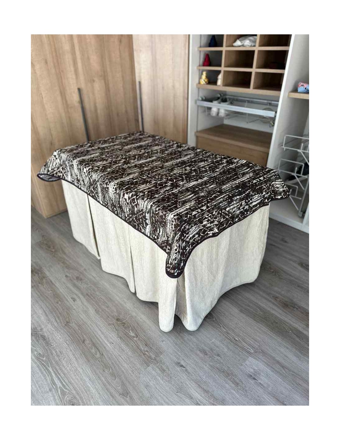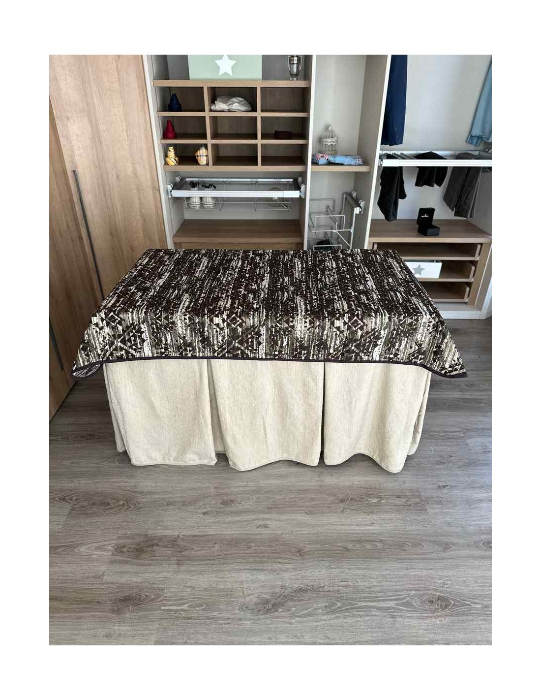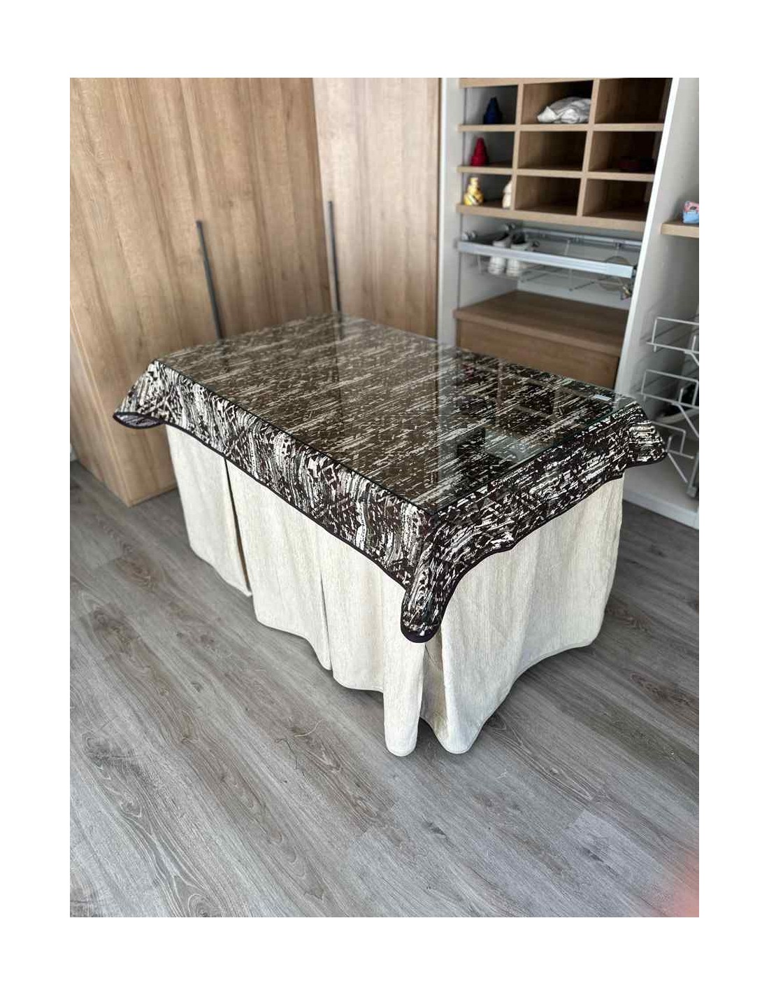 Confeccionada con 8 pliegues para mantener el calor de manera eficiente. Las tablas comunmente llamados pliegues, favorecen la retención de la temperatura impidiendo escapar el calor cuando nos sentamos en la mesa y nos cubrimos con ella. Gracias a nuestro diseño en los fuelles la falda de mesa camilla caerá cubriéndono los laterales e impidiendo que escape el calor.