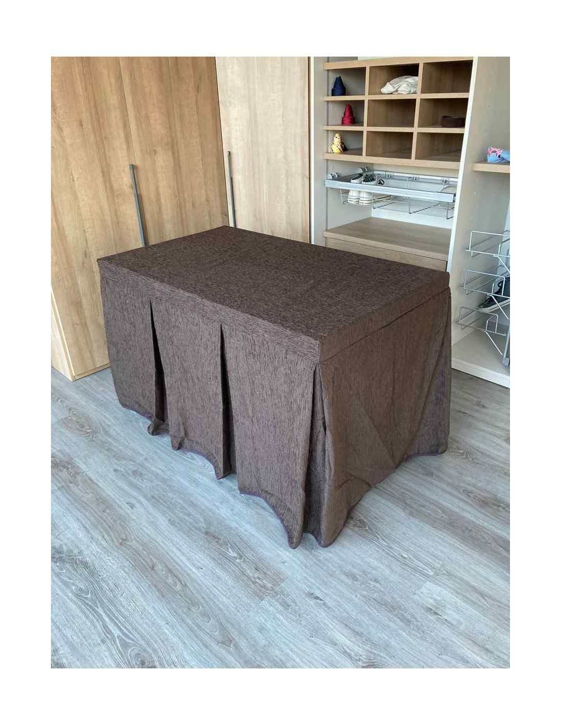 Confeccionada con 8 pliegues para mantener el calor de manera eficiente. Las tablas comunmente llamados pliegues, favorecen la retención de la temperatura impidiendo escapar el calor cuando nos sentamos en la mesa y nos cubrimos con ella. Gracias a nuestro diseño en los fuelles la falda de mesa camilla caerá cubriéndono los laterales e impidiendo que escape el calor.