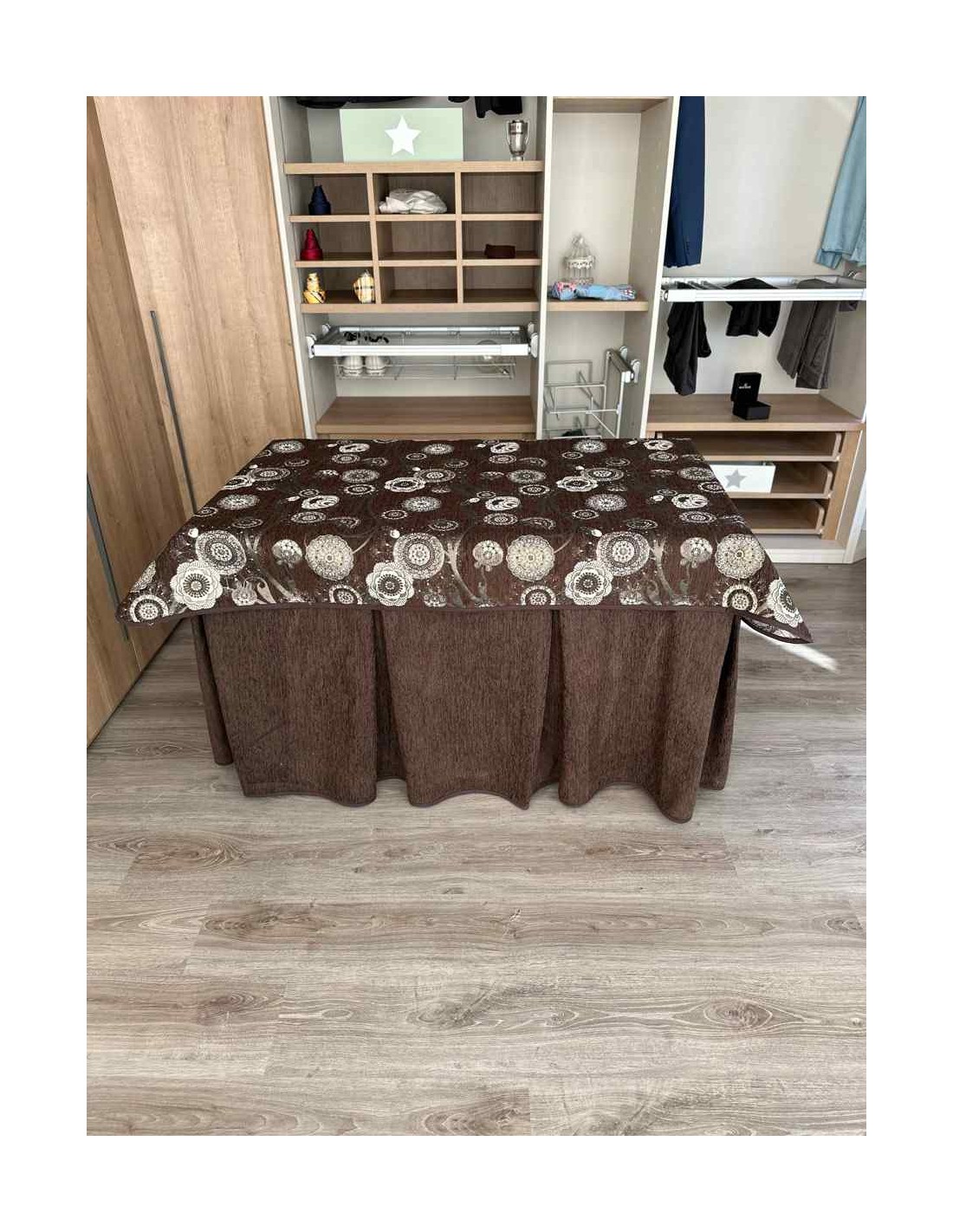 Disfruta la calidez de esta ropa de mesa camilla con tejido chenilla de 8 pliegues con tapete. Tacto suave y agradable, mantiene la temperatura facilitando el ahorro de consumo energético.