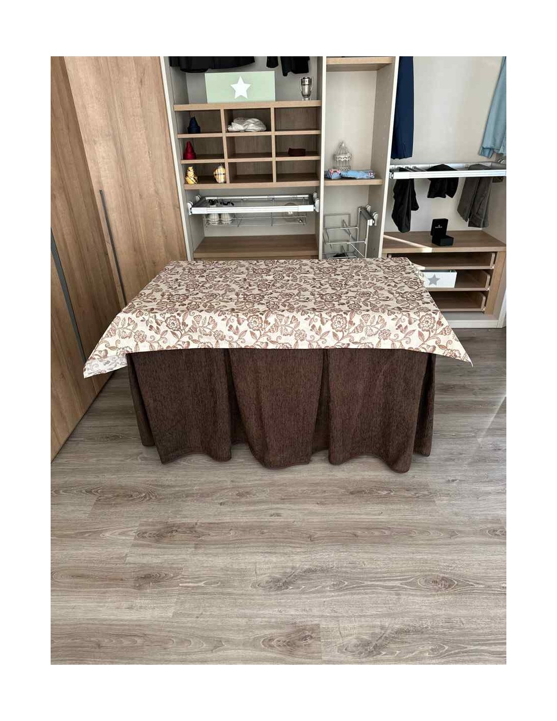 Disfruta la calidez de esta ropa de mesa camilla con tejido chenilla de 8 pliegues con tapete. Tacto suave y agradable, mantiene la temperatura facilitando el ahorro de consumo energético.