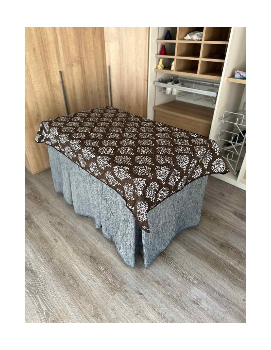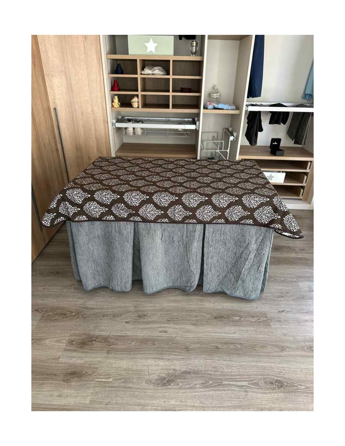 Confeccionada con 8 pliegues para mantener el calor de manera eficiente. Las tablas comunmente llamados pliegues, favorecen la retención de la temperatura impidiendo escapar el calor cuando nos sentamos en la mesa y nos cubrimos con ella. Gracias a nuestro diseño en los fuelles la falda de mesa camilla caerá cubriéndono los laterales e impidiendo que escape el calor.