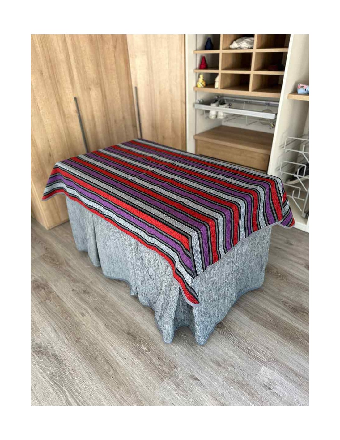 Conjunto Ropa Chenilla 8 Pliegues color Gris con Tapete Franjas