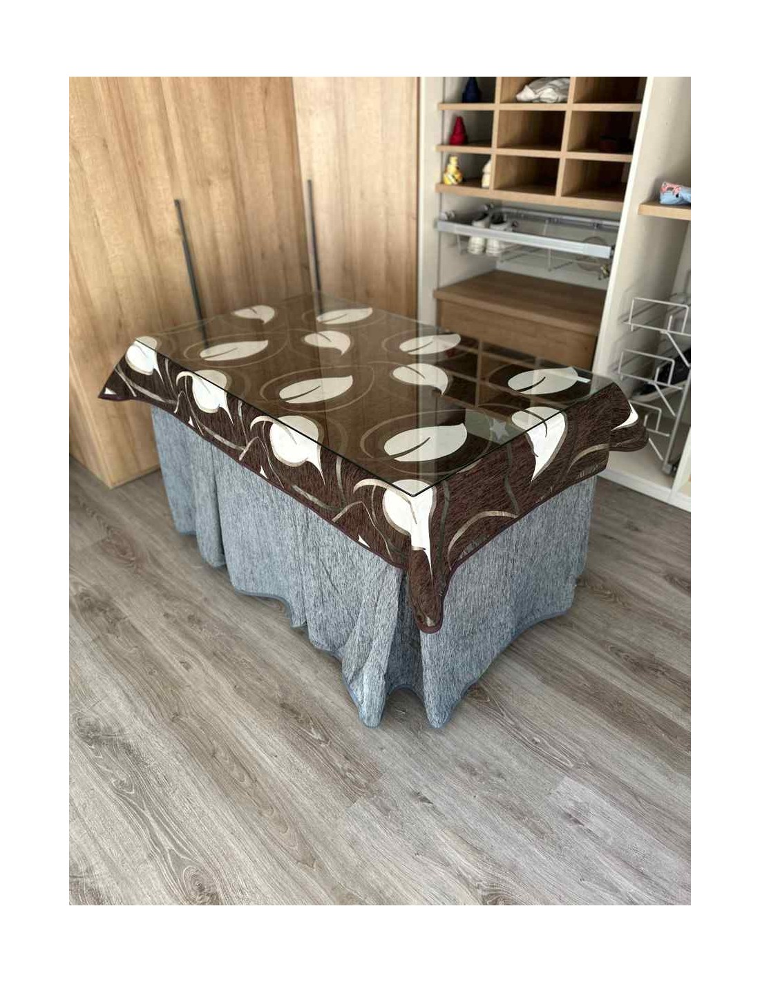 Disfruta la calidez de esta ropa de mesa camilla con tejido chenilla de 8 pliegues con tapete. Tacto suave y agradable, mantiene la temperatura facilitando el ahorro de consumo energético.