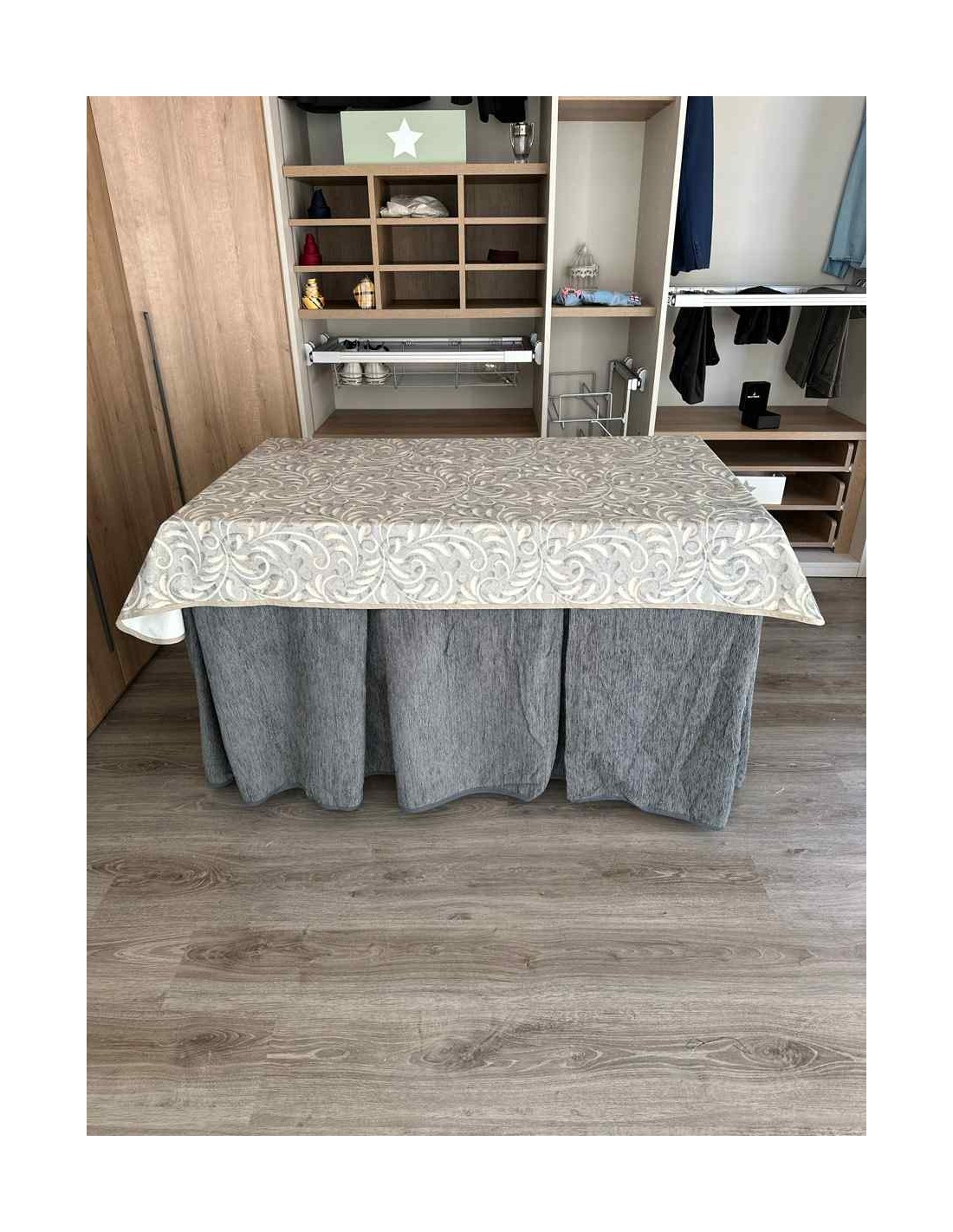 Confeccionada con 8 pliegues para mantener el calor de manera eficiente. Las tablas comunmente llamados pliegues, favorecen la retención de la temperatura impidiendo escapar el calor cuando nos sentamos en la mesa y nos cubrimos con ella. Gracias a nuestro diseño en los fuelles la falda de mesa camilla caerá cubriéndono los laterales e impidiendo que escape el calor.