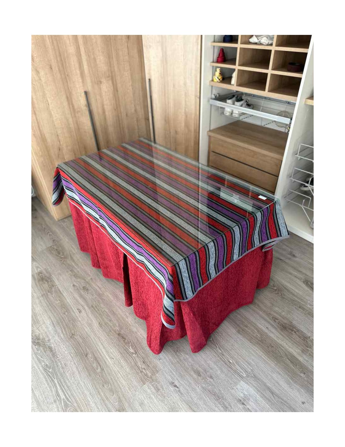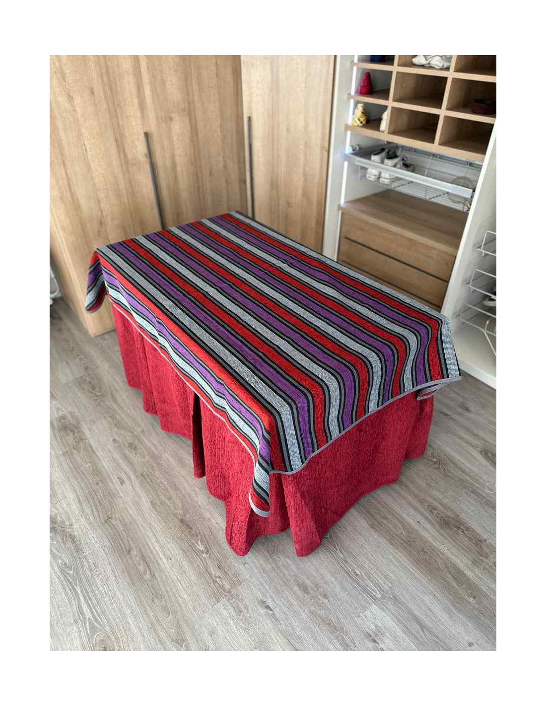 Confeccionada con 8 pliegues para mantener el calor de manera eficiente. Las tablas comunmente llamados pliegues, favorecen la retención de la temperatura impidiendo escapar el calor cuando nos sentamos en la mesa y nos cubrimos con ella. Gracias a nuestro diseño en los fuelles la falda de mesa camilla caerá cubriéndono los laterales e impidiendo que escape el calor.
