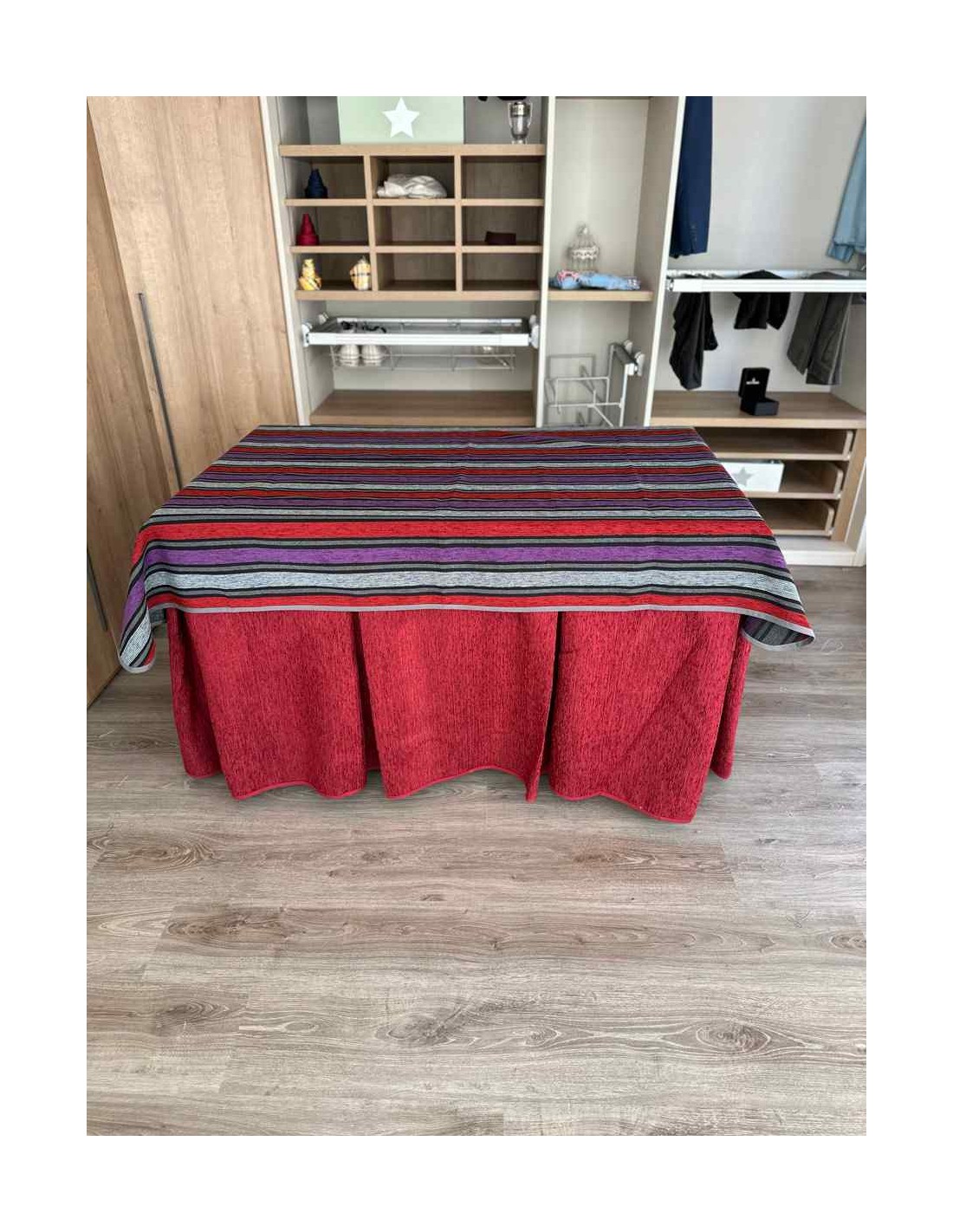 Conjunto Ropa Chenilla 8 Pliegues color Rojo con Tapete Franjas