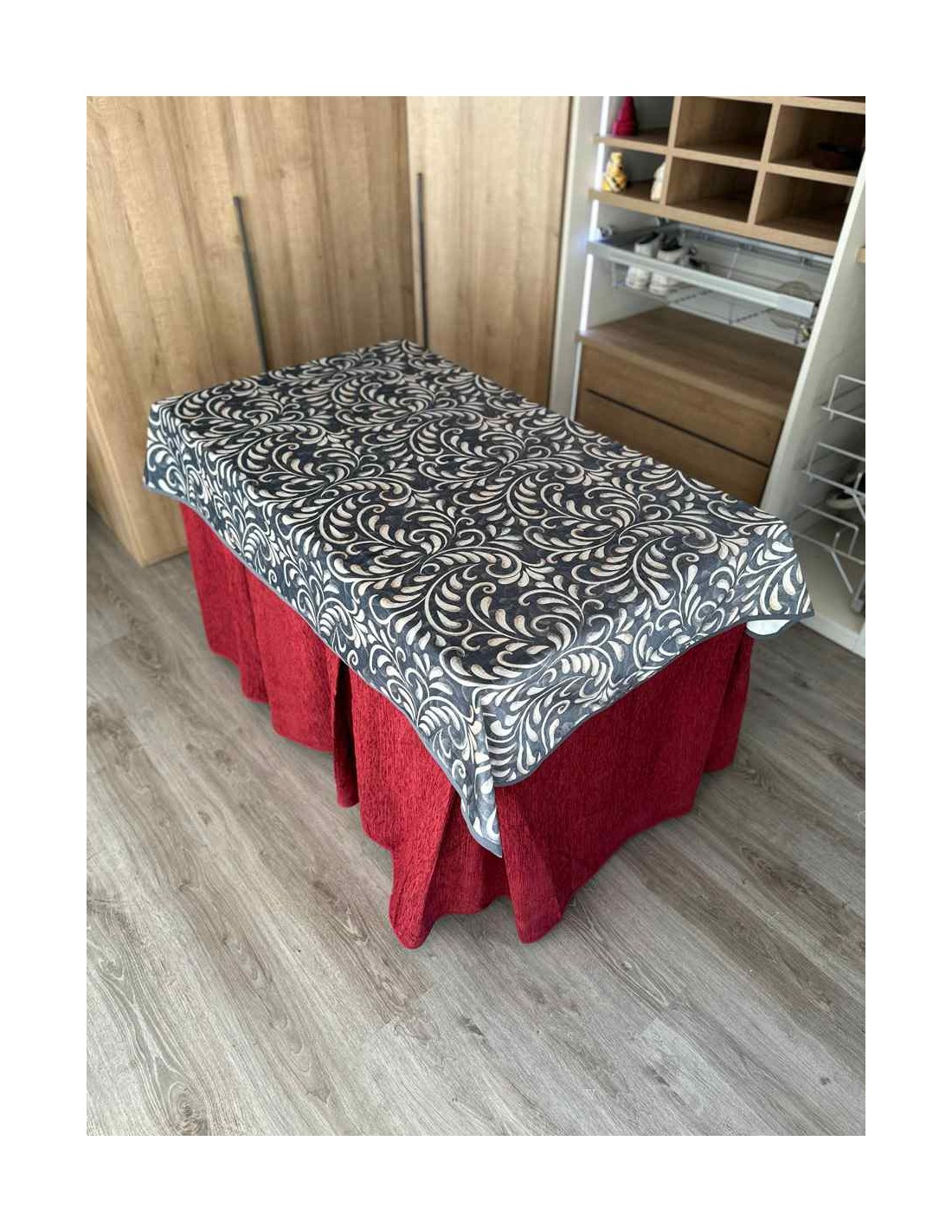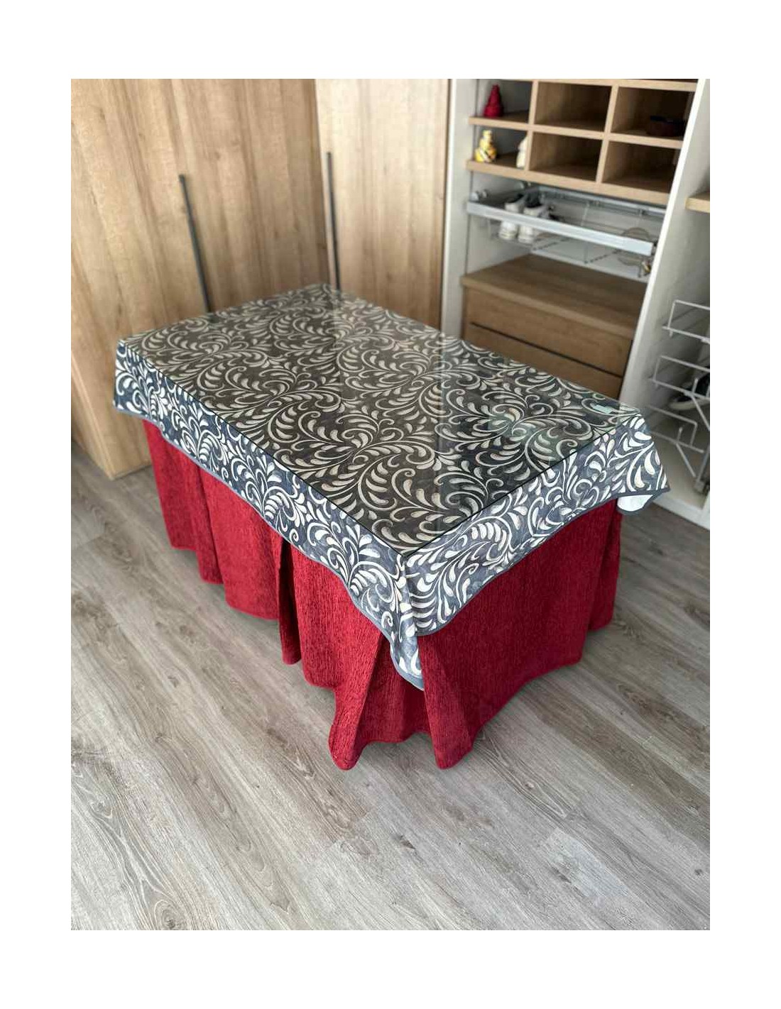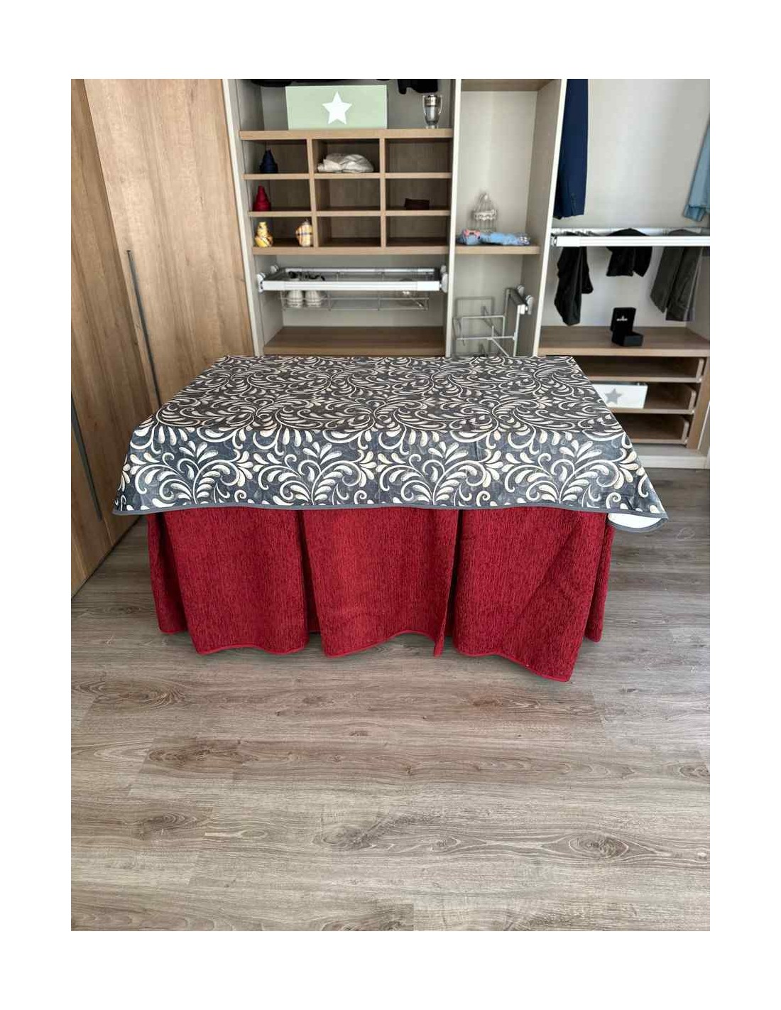 Confeccionada con 8 pliegues para mantener el calor de manera eficiente. Las tablas comunmente llamados pliegues, favorecen la retención de la temperatura impidiendo escapar el calor cuando nos sentamos en la mesa y nos cubrimos con ella. Gracias a nuestro diseño en los fuelles la falda de mesa camilla caerá cubriéndono los laterales e impidiendo que escape el calor.