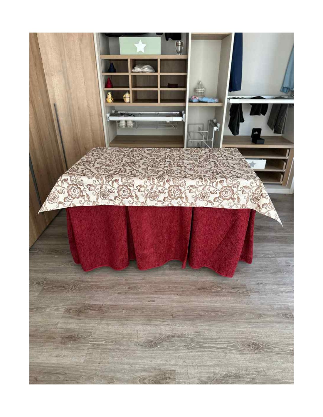 Disfruta la calidez de esta ropa de mesa camilla con tejido chenilla de 8 pliegues con tapete. Tacto suave y agradable, mantiene la temperatura facilitando el ahorro de consumo energético.