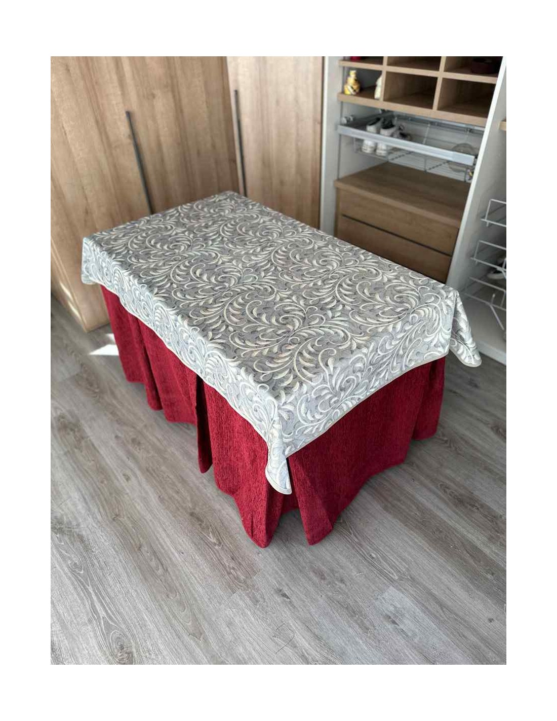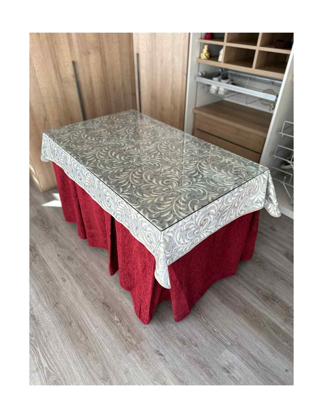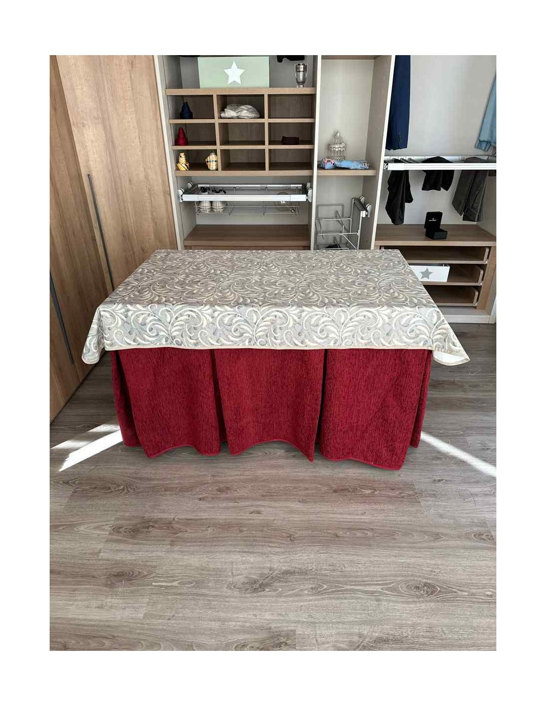 Confeccionada con 8 pliegues para mantener el calor de manera eficiente. Las tablas comunmente llamados pliegues, favorecen la retención de la temperatura impidiendo escapar el calor cuando nos sentamos en la mesa y nos cubrimos con ella. Gracias a nuestro diseño en los fuelles la falda de mesa camilla caerá cubriéndono los laterales e impidiendo que escape el calor.
