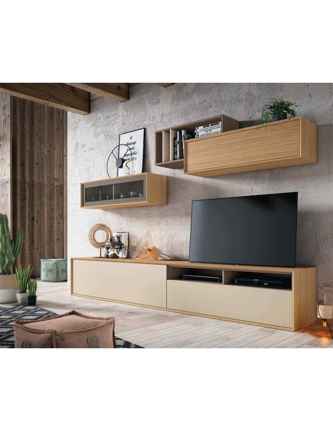 Conjuntos de salon moderno muebles a medida con aparador estanterias y vitrinas a juego colgados (6)