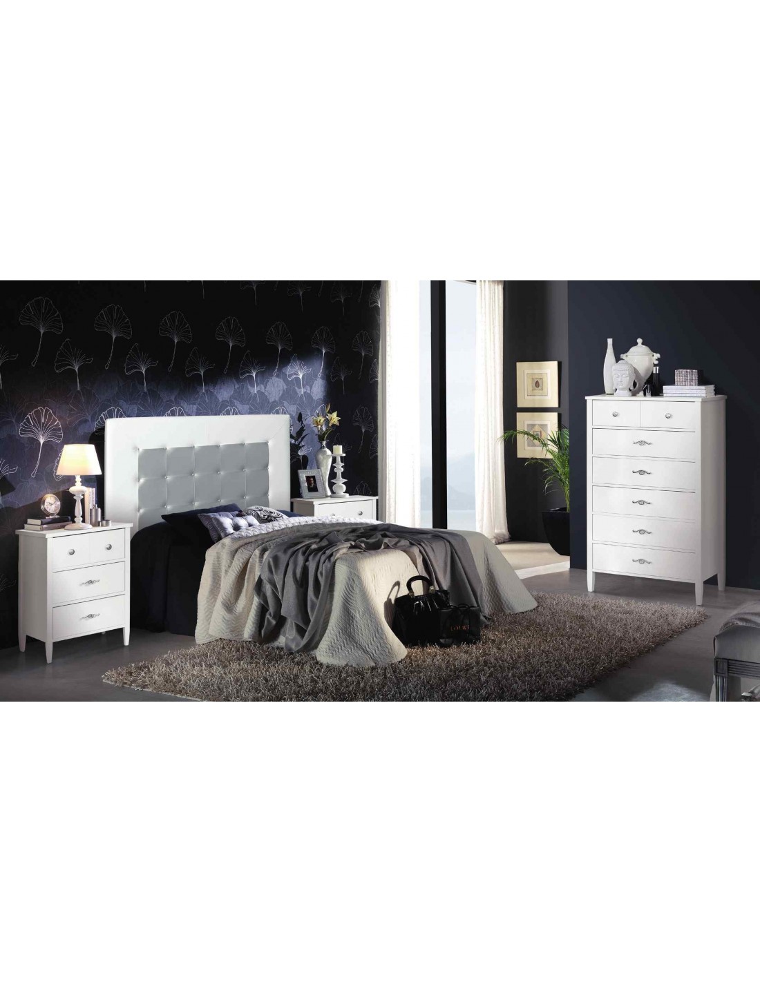 Dormitorio de matrimonio completo con cabecero mesitas de noche y cajonera en madera (1)
