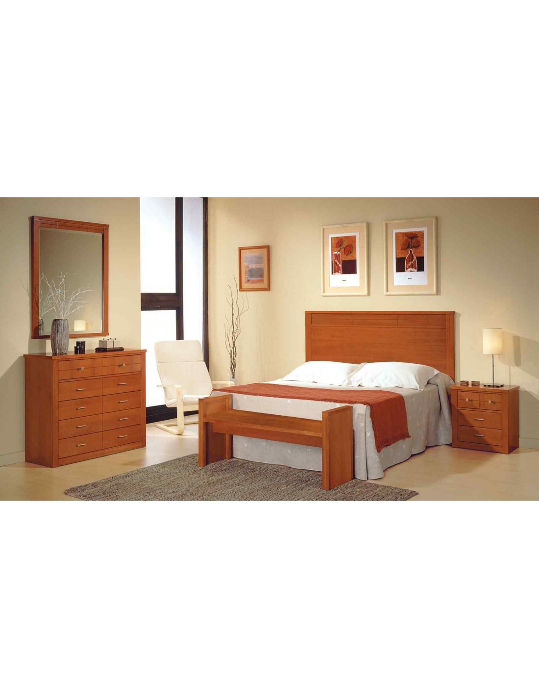 Dormitorio de matrimonio completo con cabecero mesitas de noche y cajonera en madera (6)