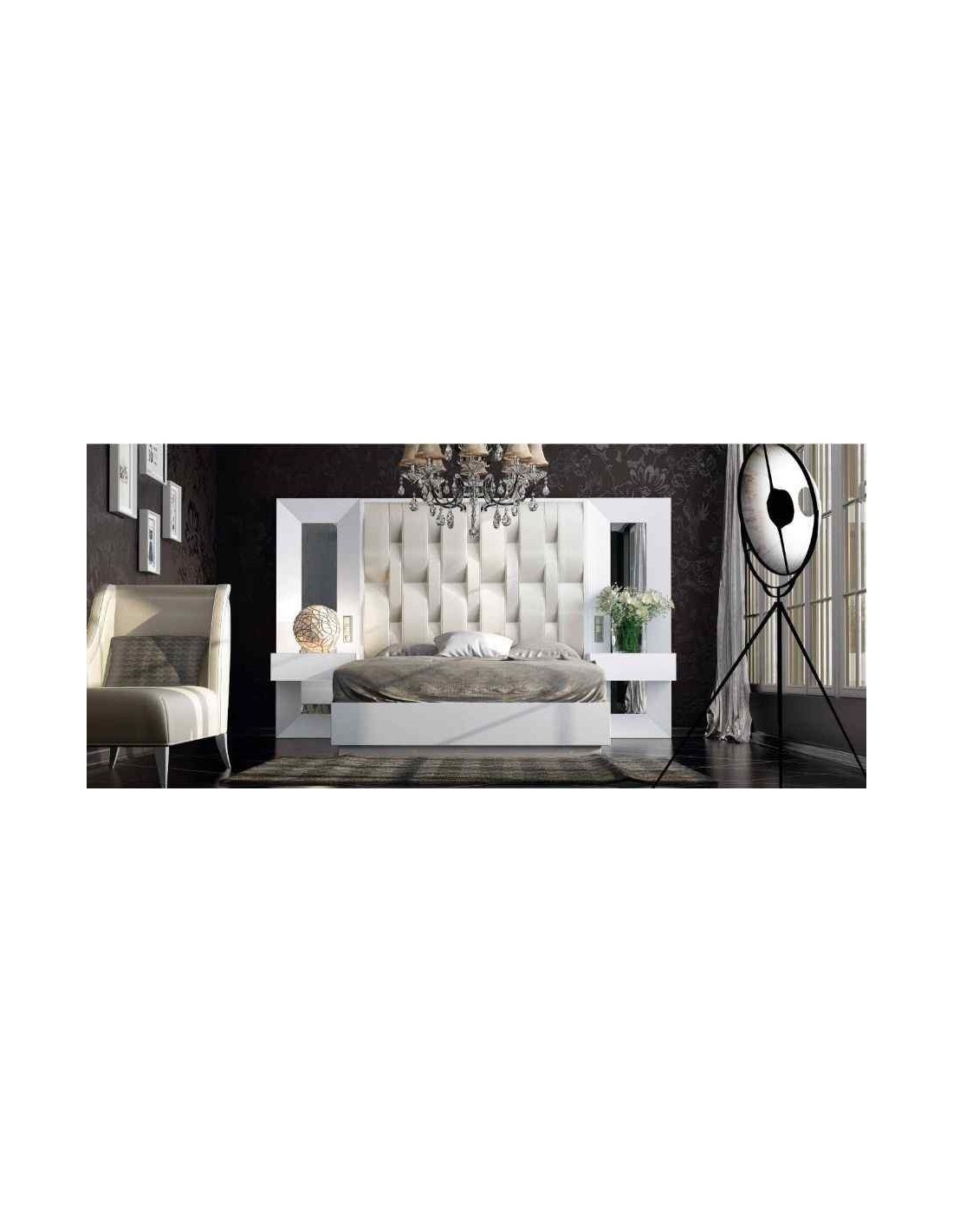 Dormitorio de matrimonio completo lacado blanco con cabeceros tapizados en diferentes acabados (101)