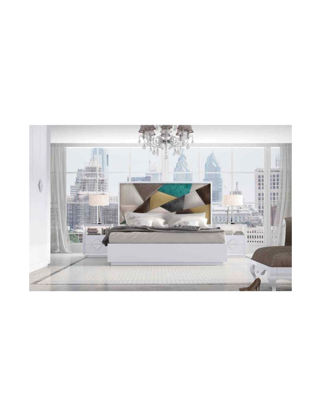 Dormitorio de matrimonio completo lacado blanco con cabeceros tapizados en diferentes acabados (110)