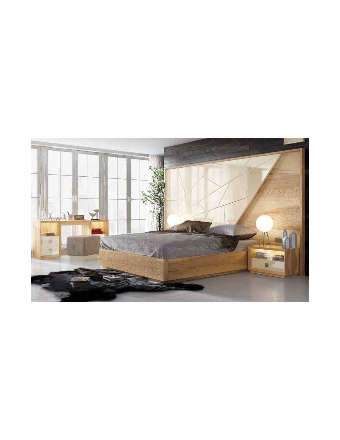 Dormitorio de matrimonio completo lacado blanco con cabeceros tapizados en diferentes acabados (113)