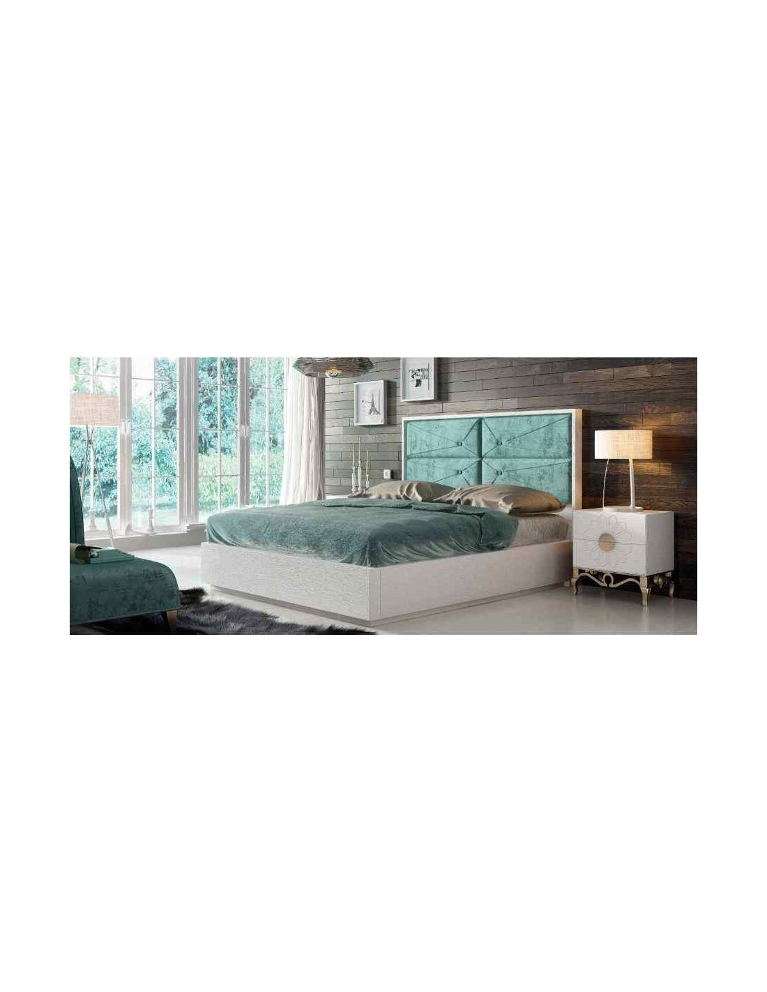 Dormitorio de matrimonio completo lacado blanco con cabeceros tapizados en diferentes acabados (127)