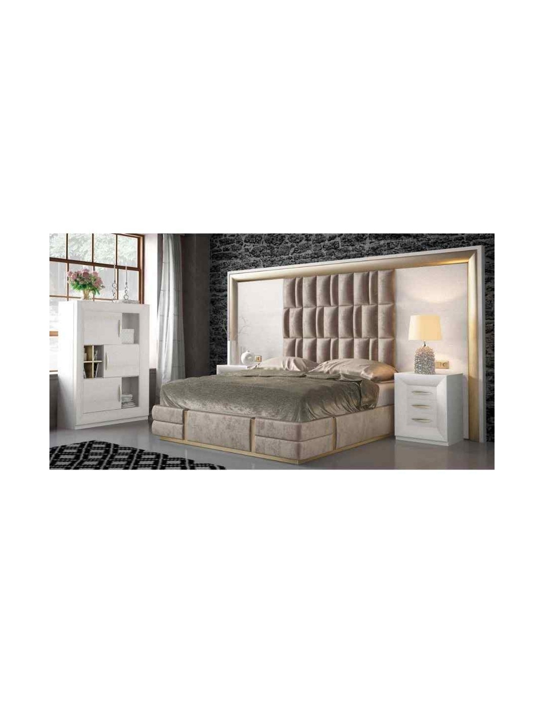 Dormitorio de matrimonio completo lacado blanco con cabeceros tapizados en diferentes acabados (13)