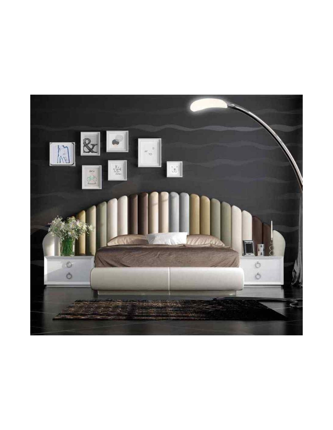 Dormitorio de matrimonio completo lacado blanco con cabeceros tapizados en diferentes acabados (130)