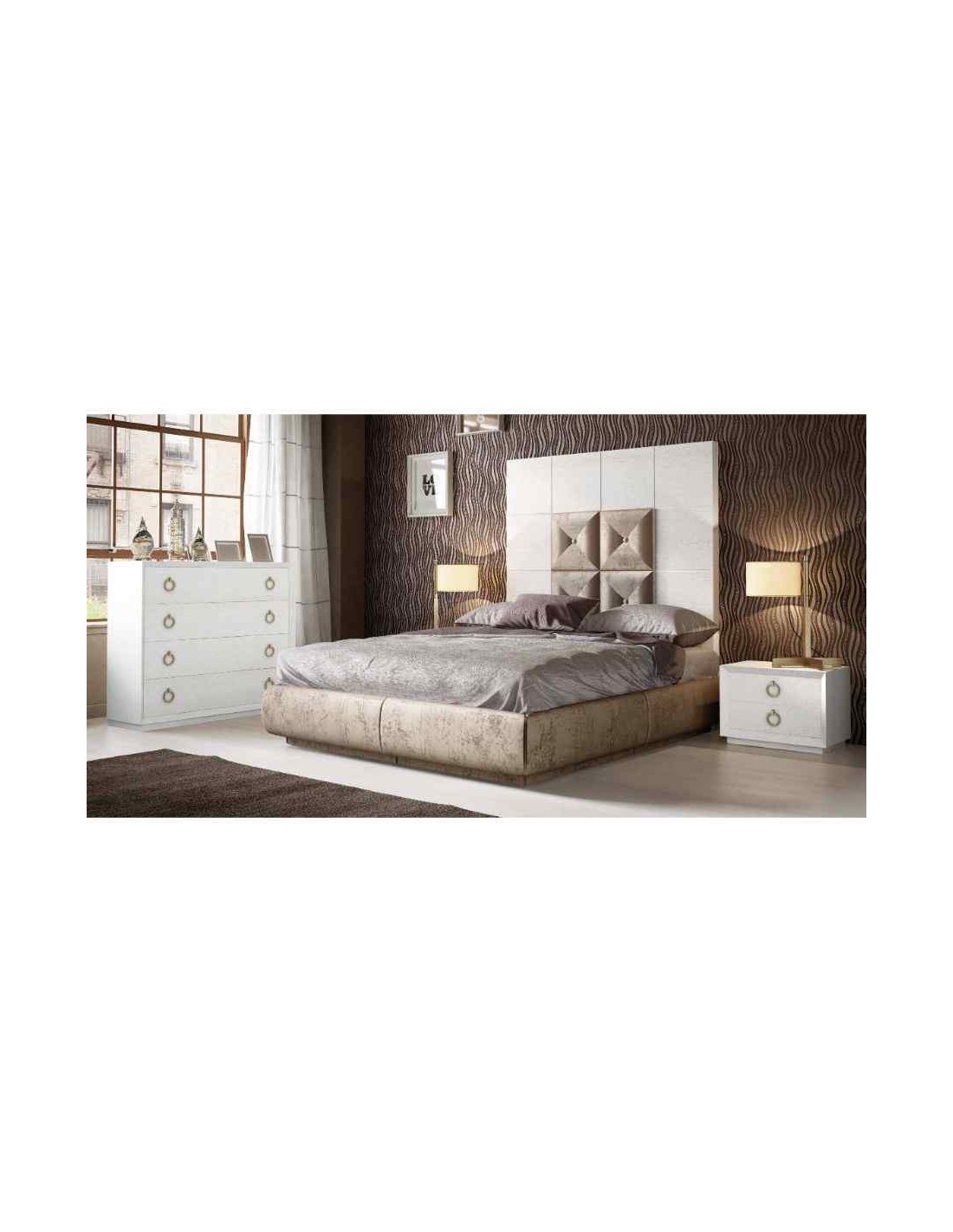 Dormitorio de matrimonio completo lacado blanco con cabeceros tapizados en diferentes acabados (135)
