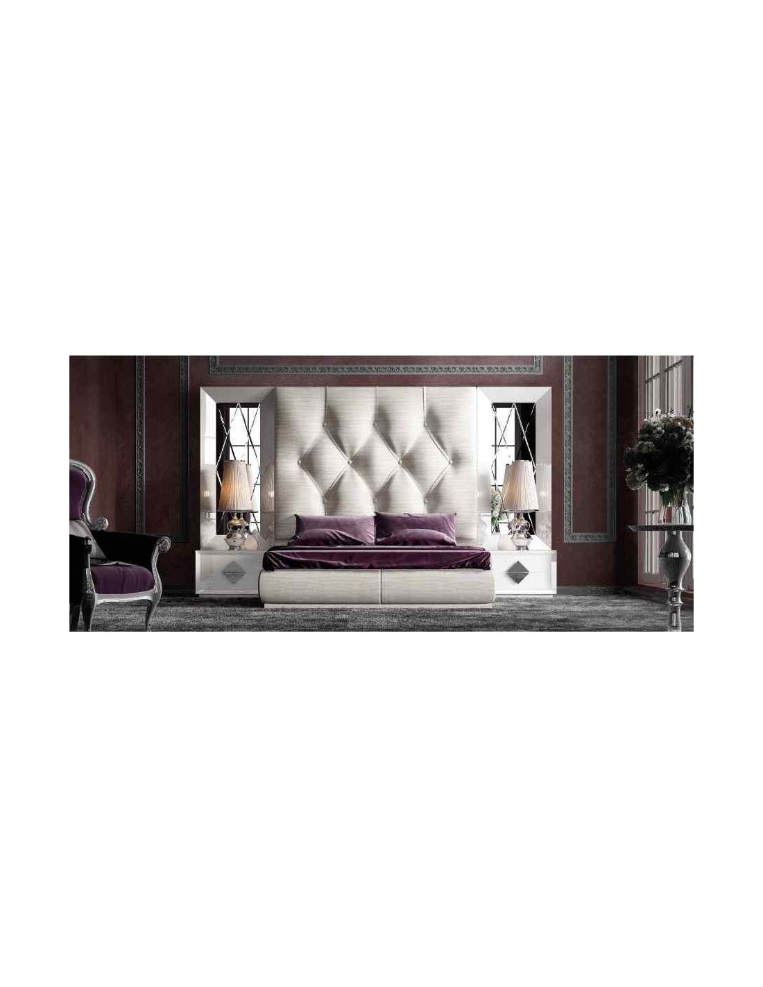 Dormitorio de matrimonio completo lacado blanco con cabeceros tapizados en diferentes acabados (140)