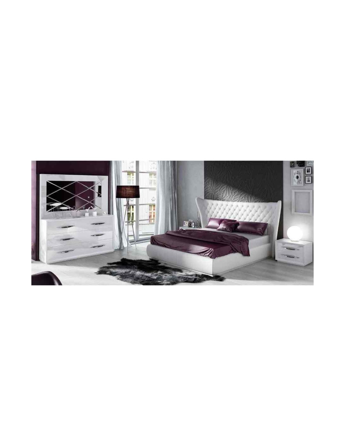 Dormitorio de matrimonio completo lacado blanco con cabeceros tapizados en diferentes acabados (145)
