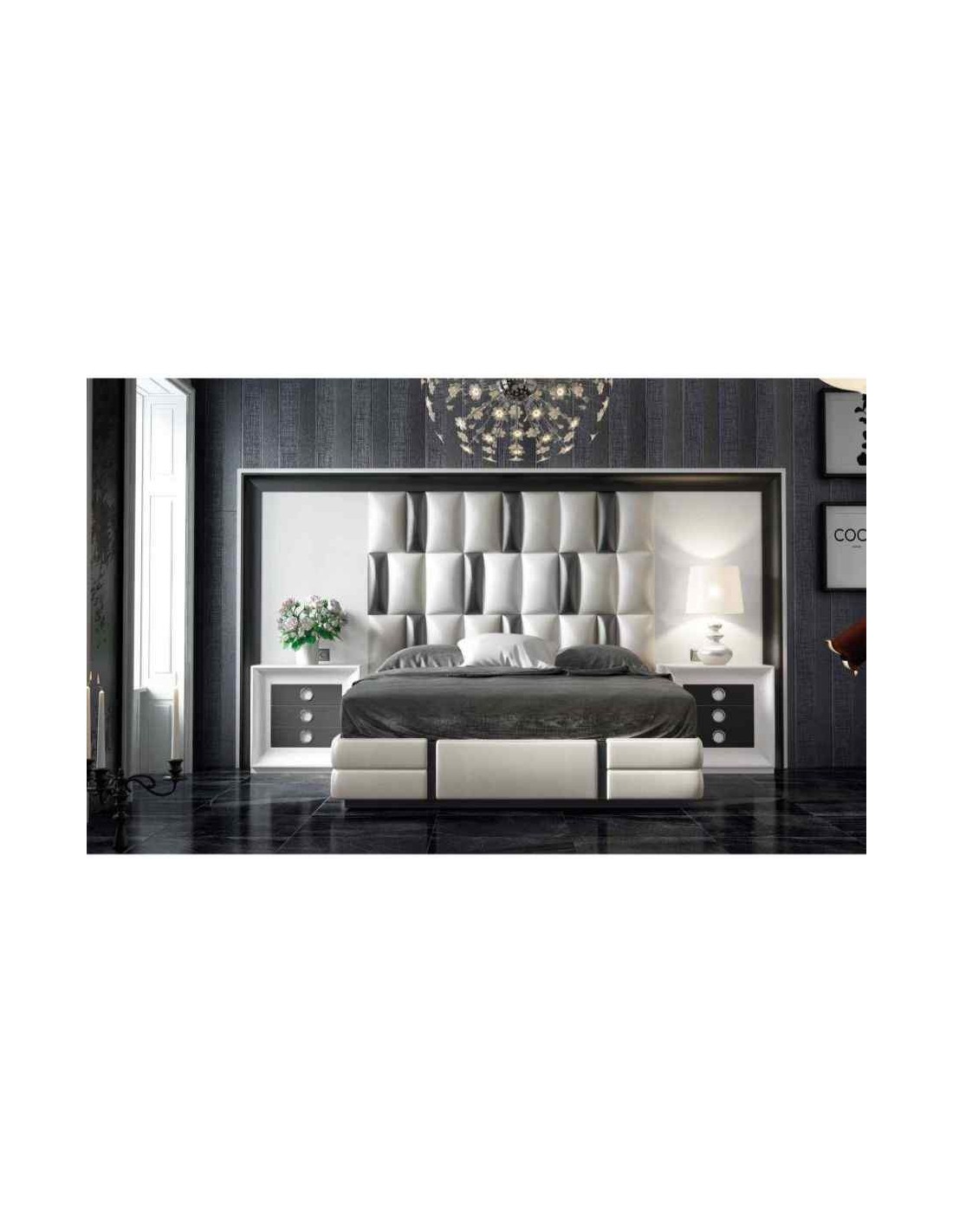 Dormitorio de matrimonio completo lacado blanco con cabeceros tapizados en diferentes acabados (163)