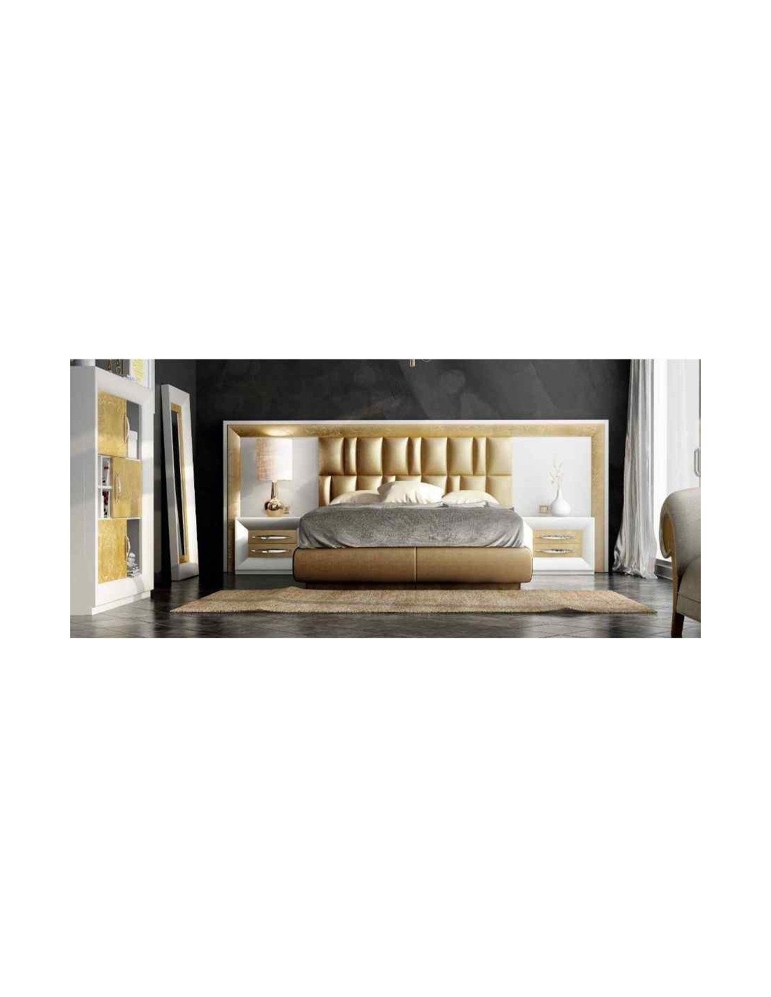 Dormitorio de matrimonio completo lacado blanco con cabeceros tapizados en diferentes acabados (26)