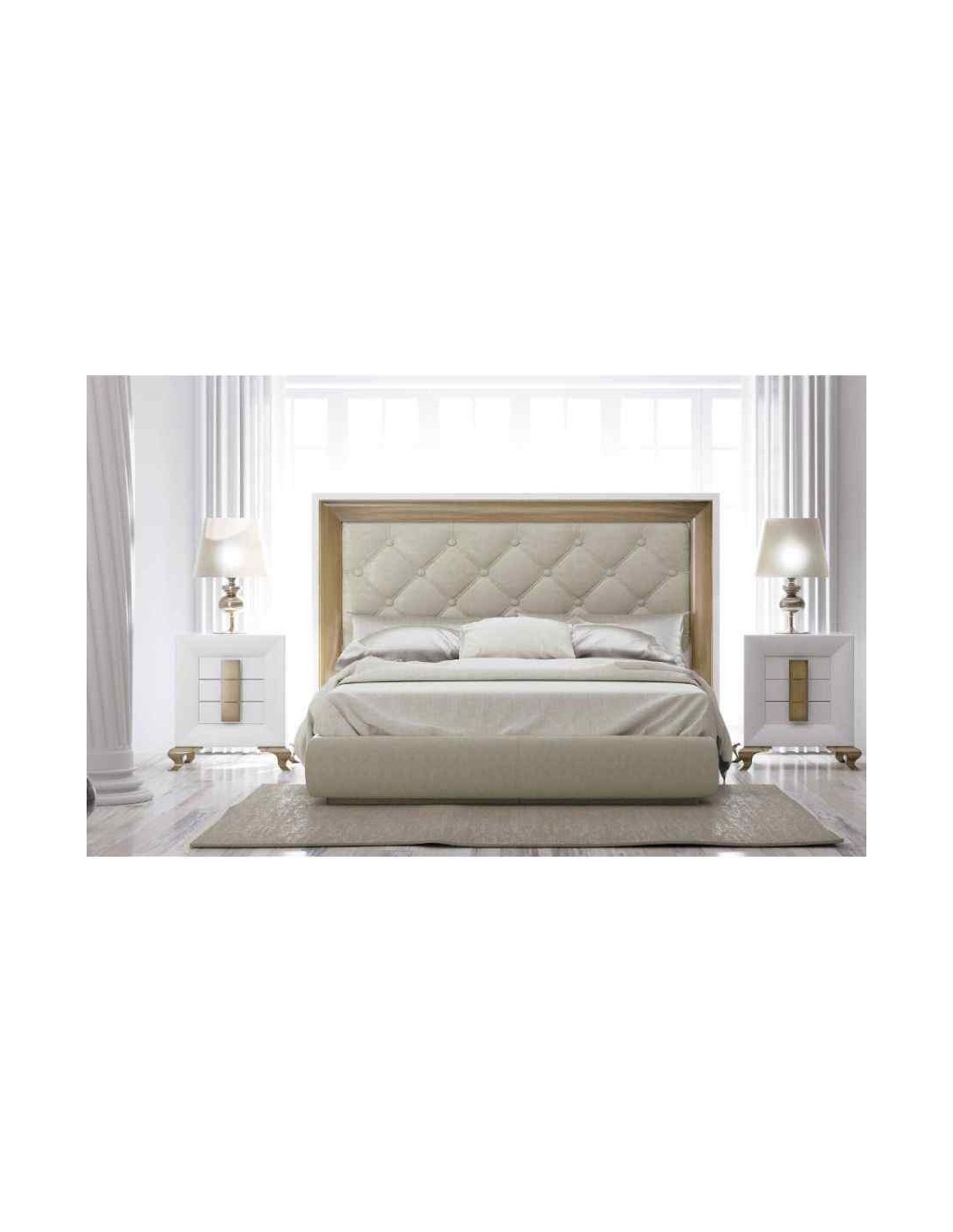 Dormitorio de matrimonio completo lacado blanco con cabeceros tapizados en diferentes acabados (28)