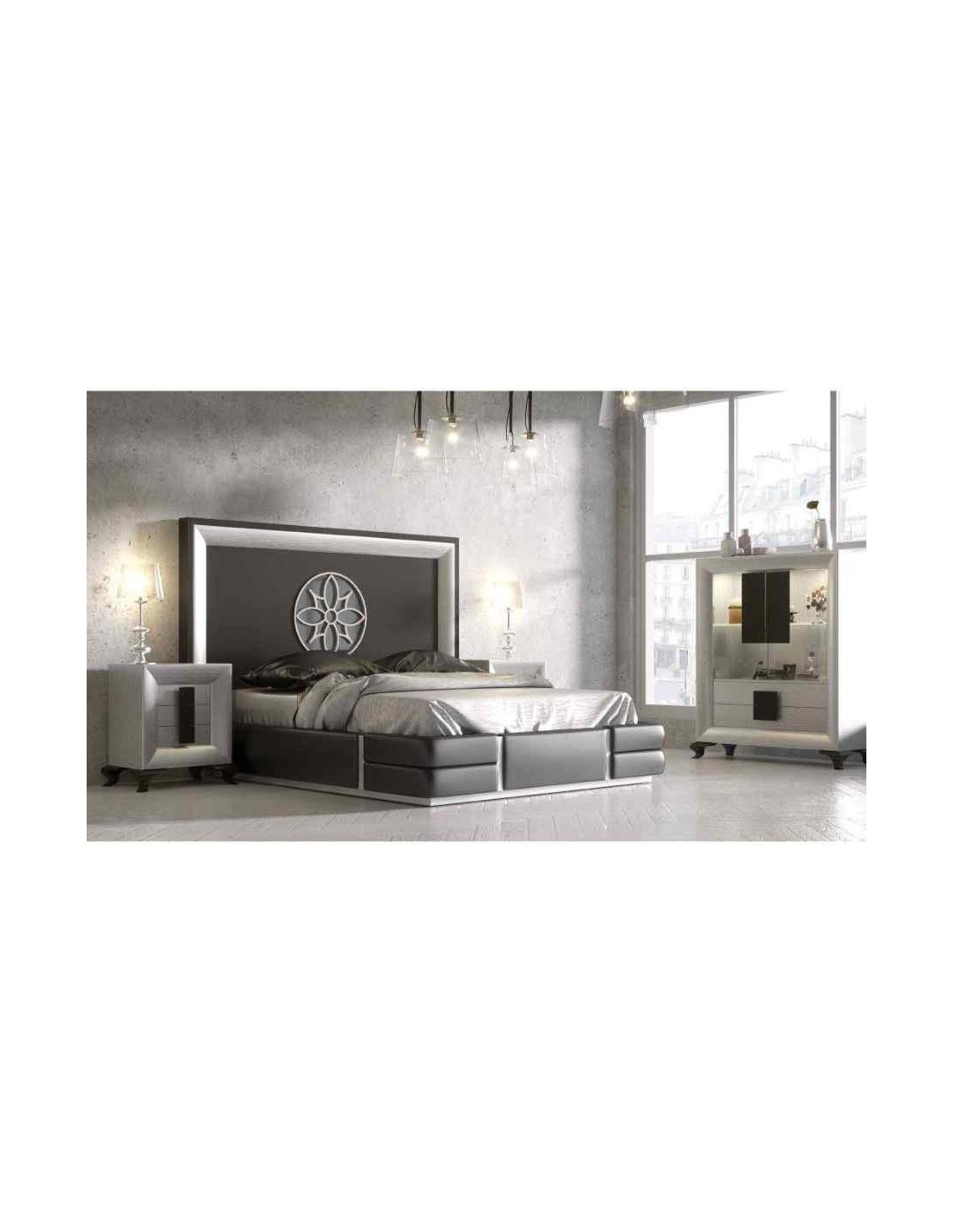 Dormitorio de matrimonio completo lacado blanco con cabeceros tapizados en diferentes acabados (29)
