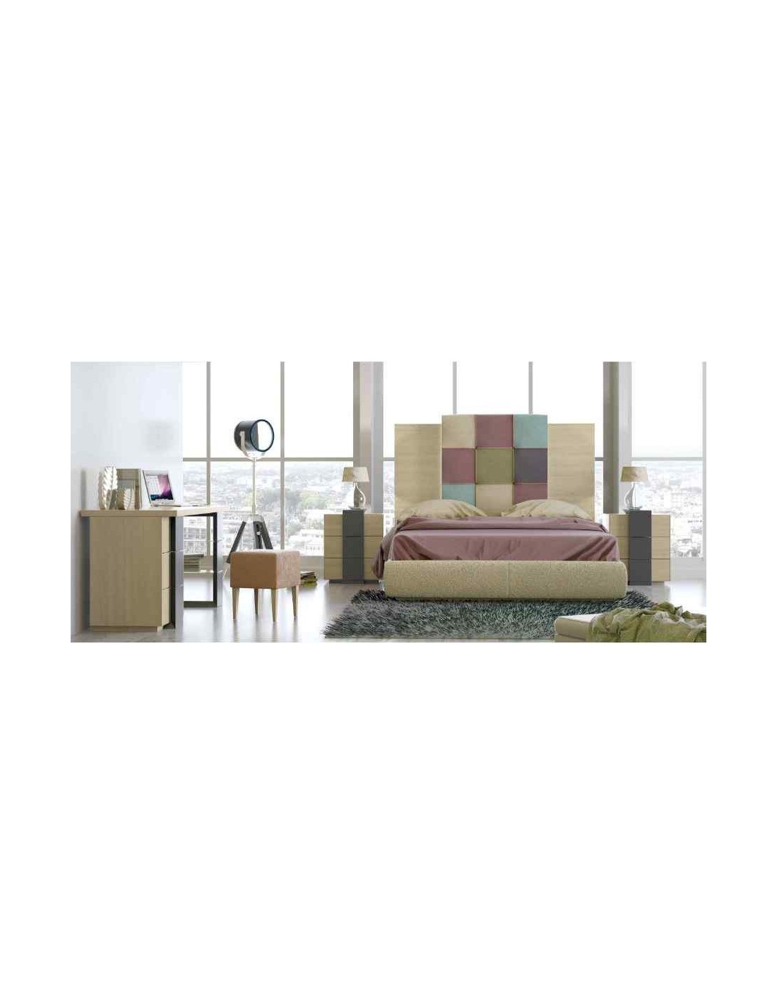 Dormitorio de matrimonio completo lacado blanco con cabeceros tapizados en diferentes acabados (78)