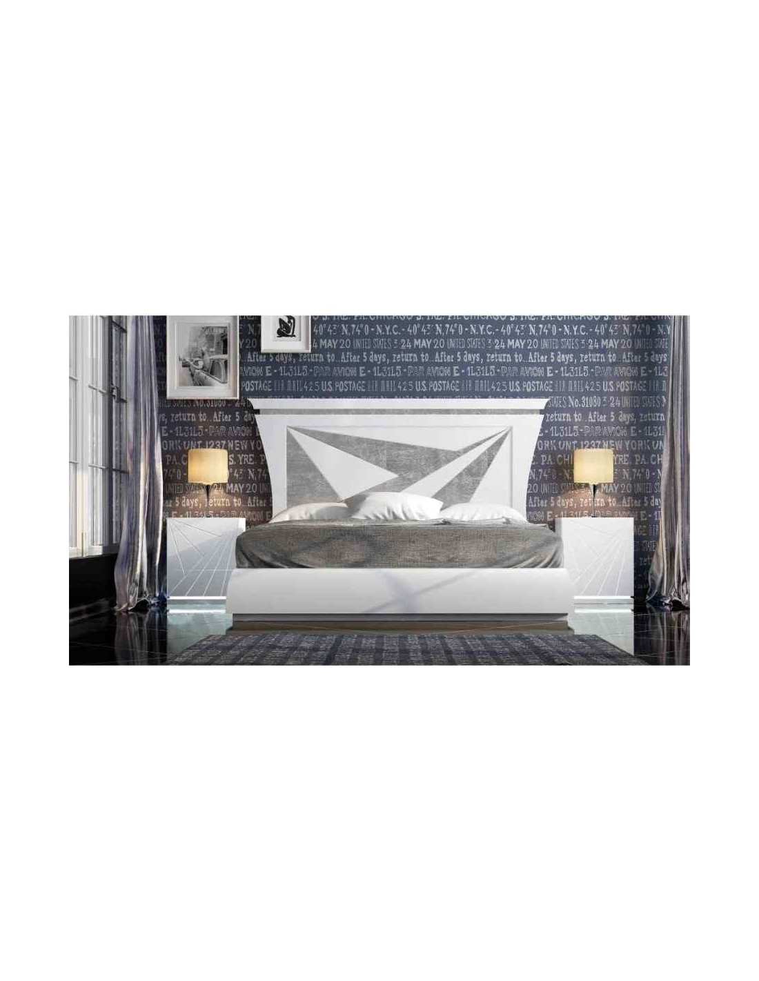 Dormitorio de matrimonio completo lacado blanco con cabeceros tapizados en diferentes acabados (90)