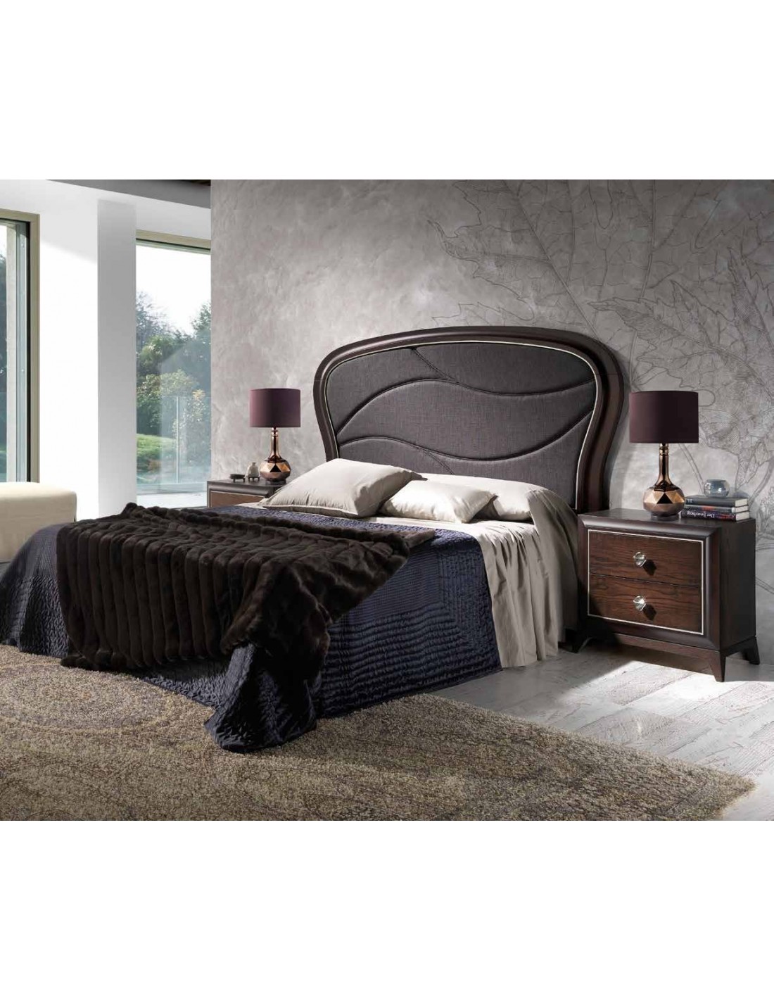 Dormitorio de matrimonio diseño clasico con cabecero en madera barnizada mesitas de noche comoda colchon somier (2)