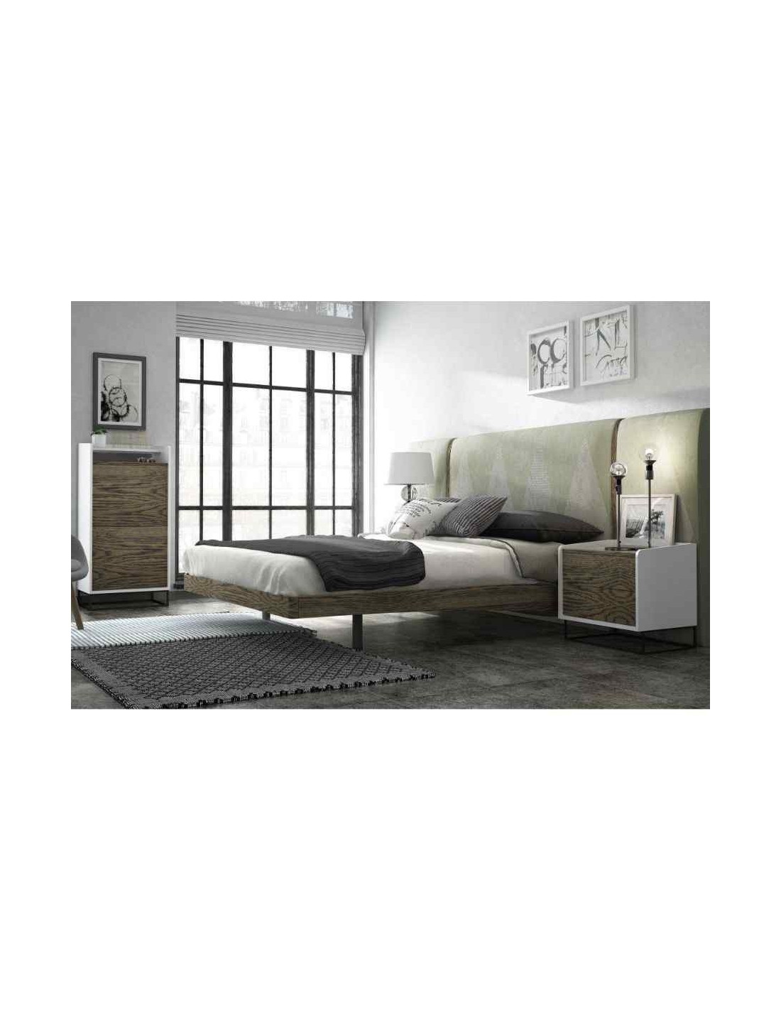 Dormitorio de matrimonio diseño moderno con cabecero tapizado mesitas altas diferentes acabados (1)