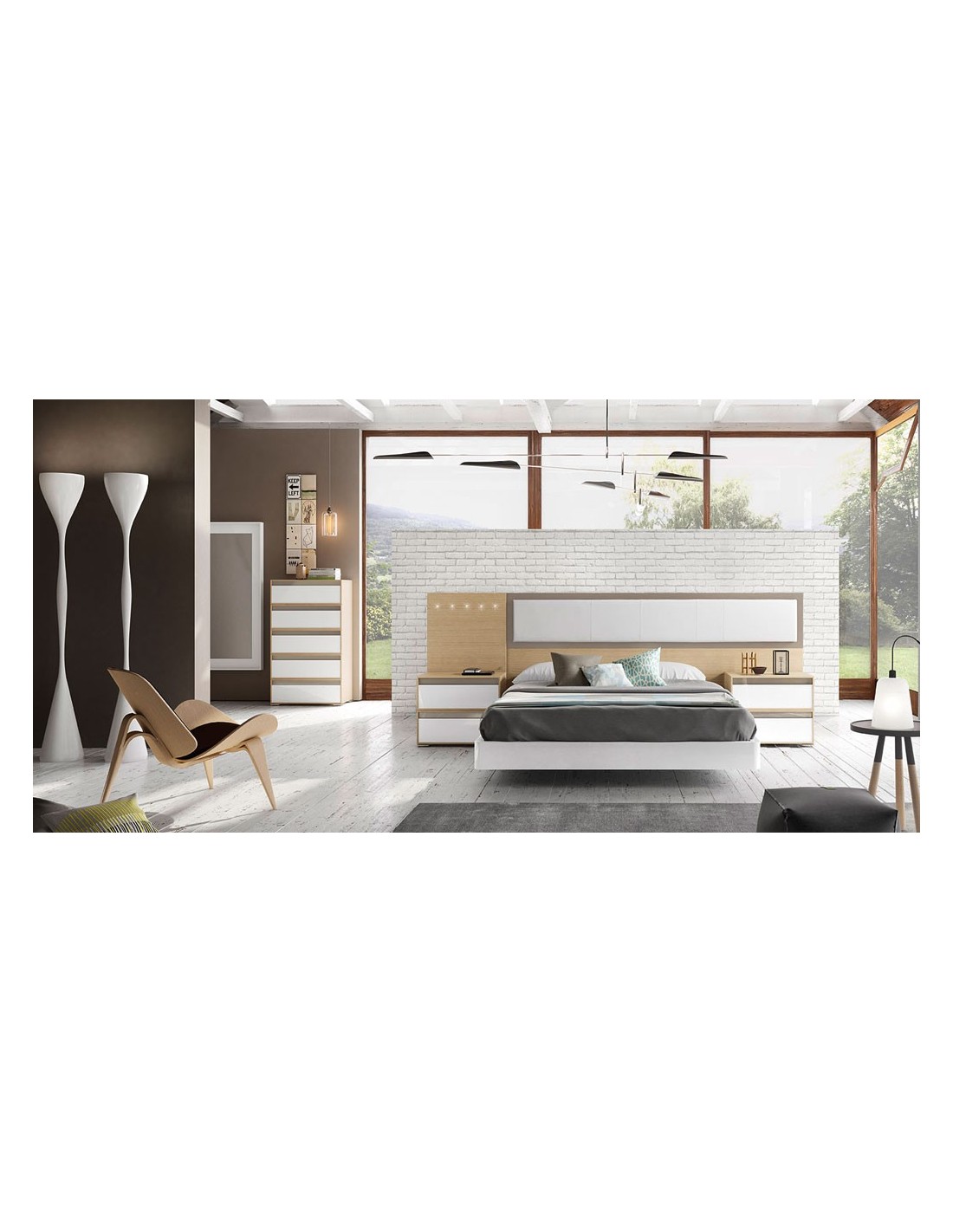 Dormitorio de matrimonio diseño moderno diferentes acabados luces led cabecero tapizado mesitas (1)