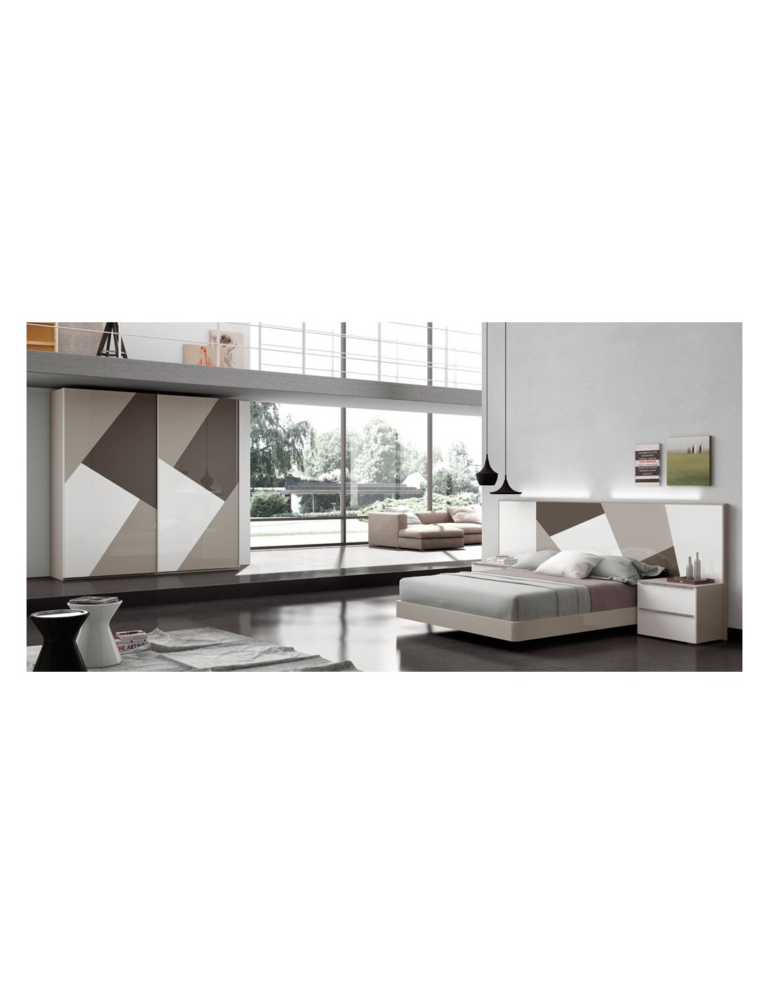 Dormitorio de matrimonio diseño moderno diferentes acabados luces led cabecero tapizado mesitas (13)