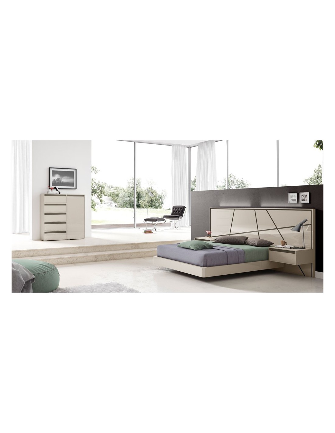 Dormitorio de matrimonio diseño moderno diferentes acabados luces led cabecero tapizado mesitas (14)
