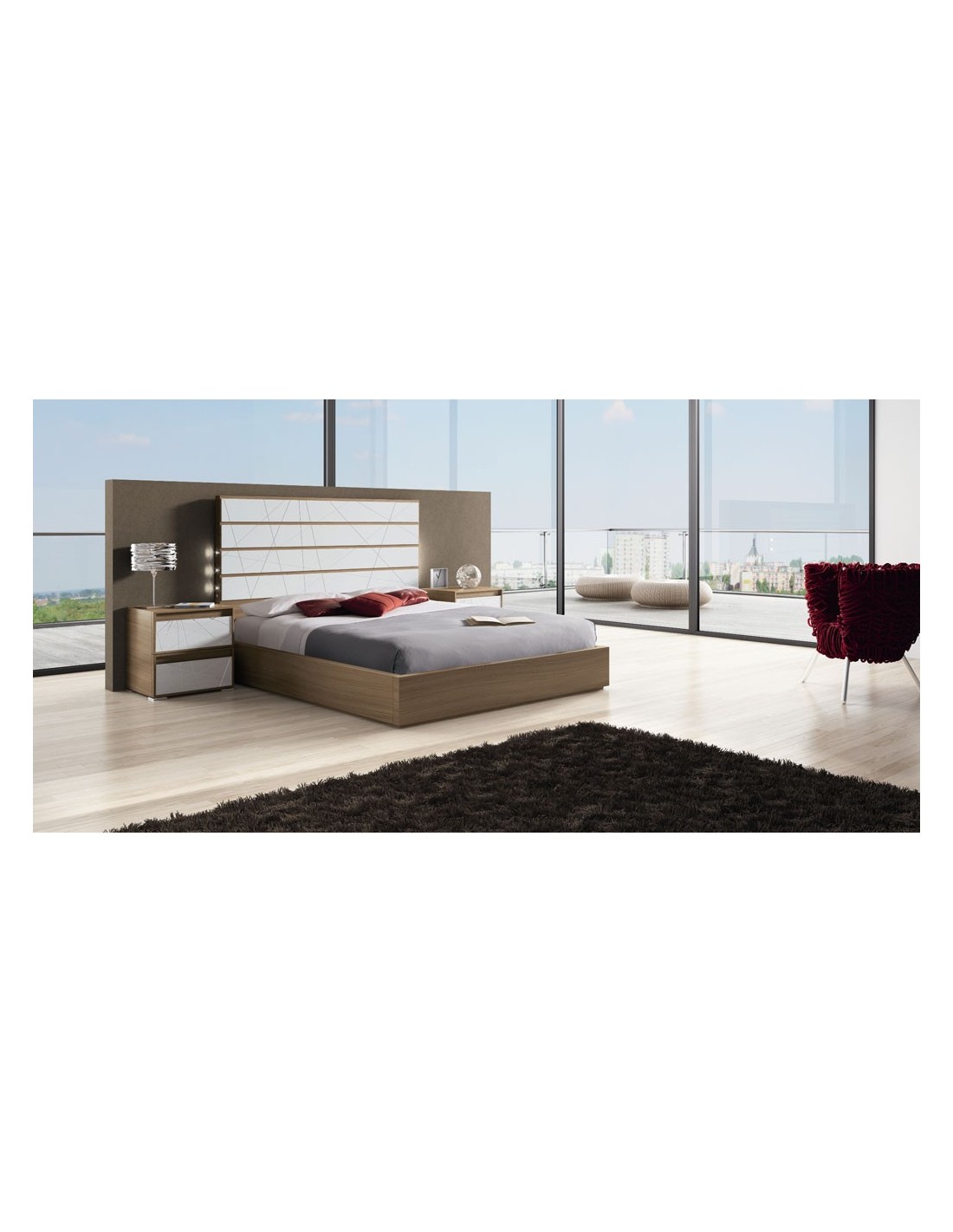 Dormitorio de matrimonio diseño moderno diferentes acabados luces led cabecero tapizado mesitas (16)