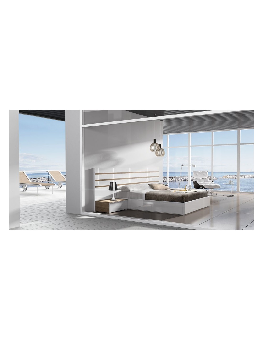 Dormitorio de matrimonio diseño moderno diferentes acabados luces led cabecero tapizado mesitas (18)