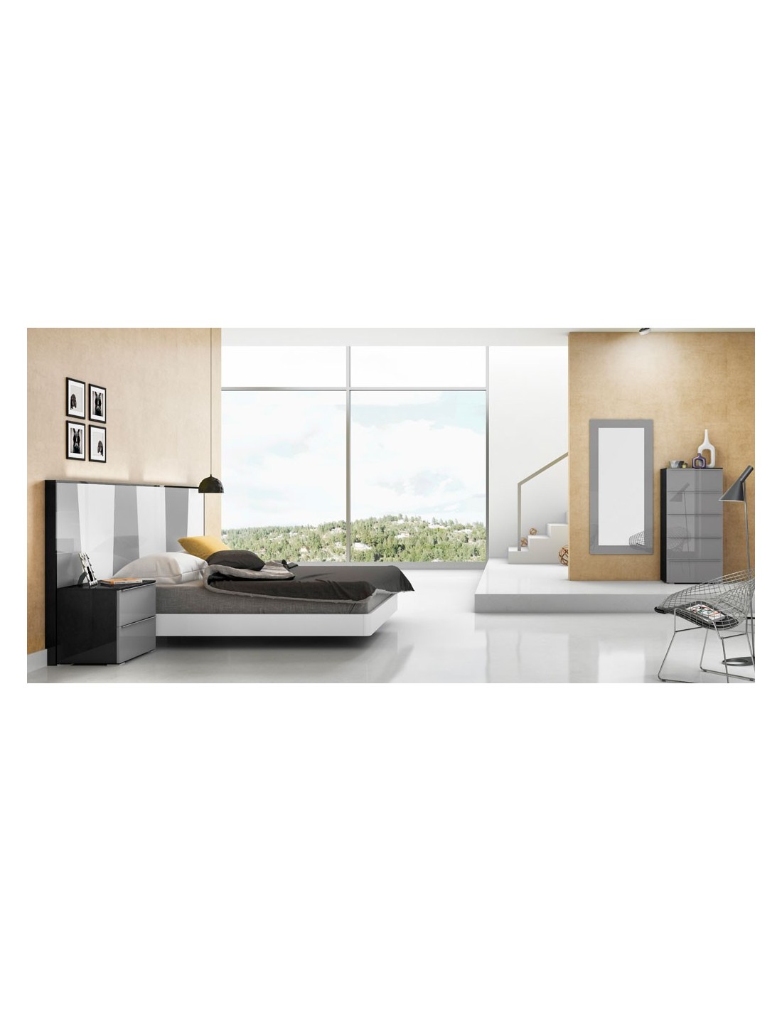 Dormitorio de matrimonio diseño moderno diferentes acabados luces led cabecero tapizado mesitas (19)