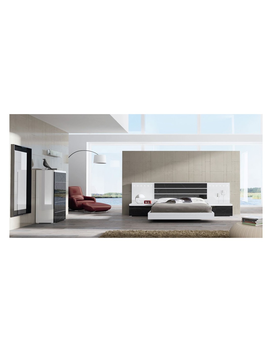 Dormitorio de matrimonio diseño moderno diferentes acabados luces led cabecero tapizado mesitas (26)