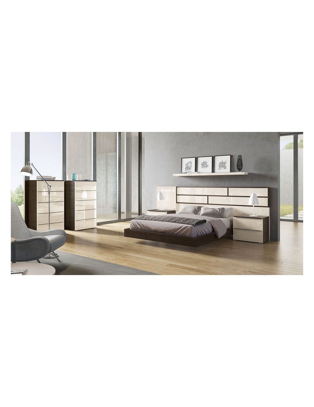 Dormitorio de matrimonio diseño moderno diferentes acabados luces led cabecero tapizado mesitas (8)