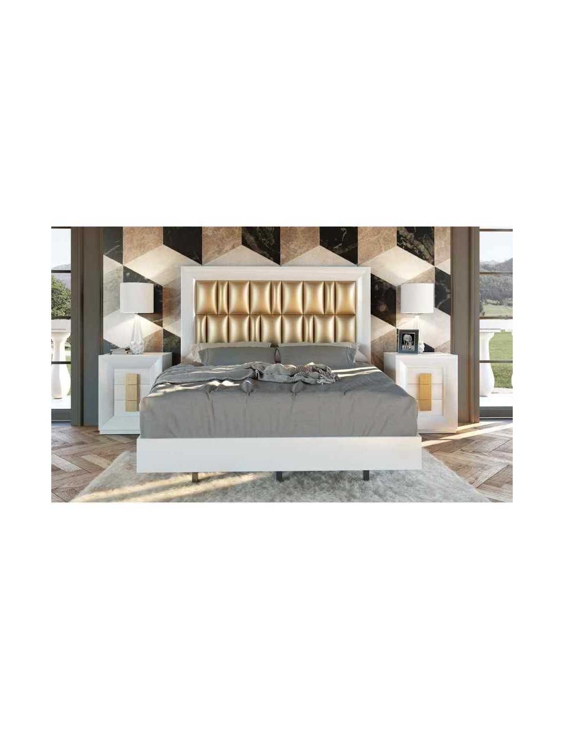 Dormitorio de matrimonio elegante con cabeceros tapizados en madera lacada (11)