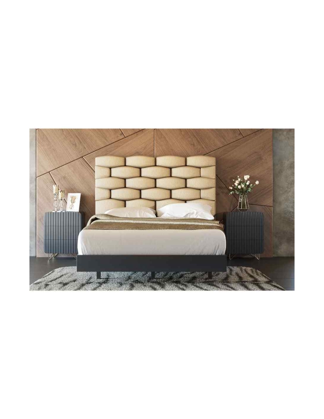 Dormitorio de matrimonio elegante con cabeceros tapizados en madera lacada (24)