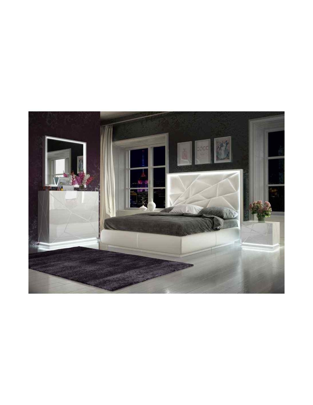 Dormitorio de matrimonio moderno con cabecero tapizado madera lacada alta gama (2)